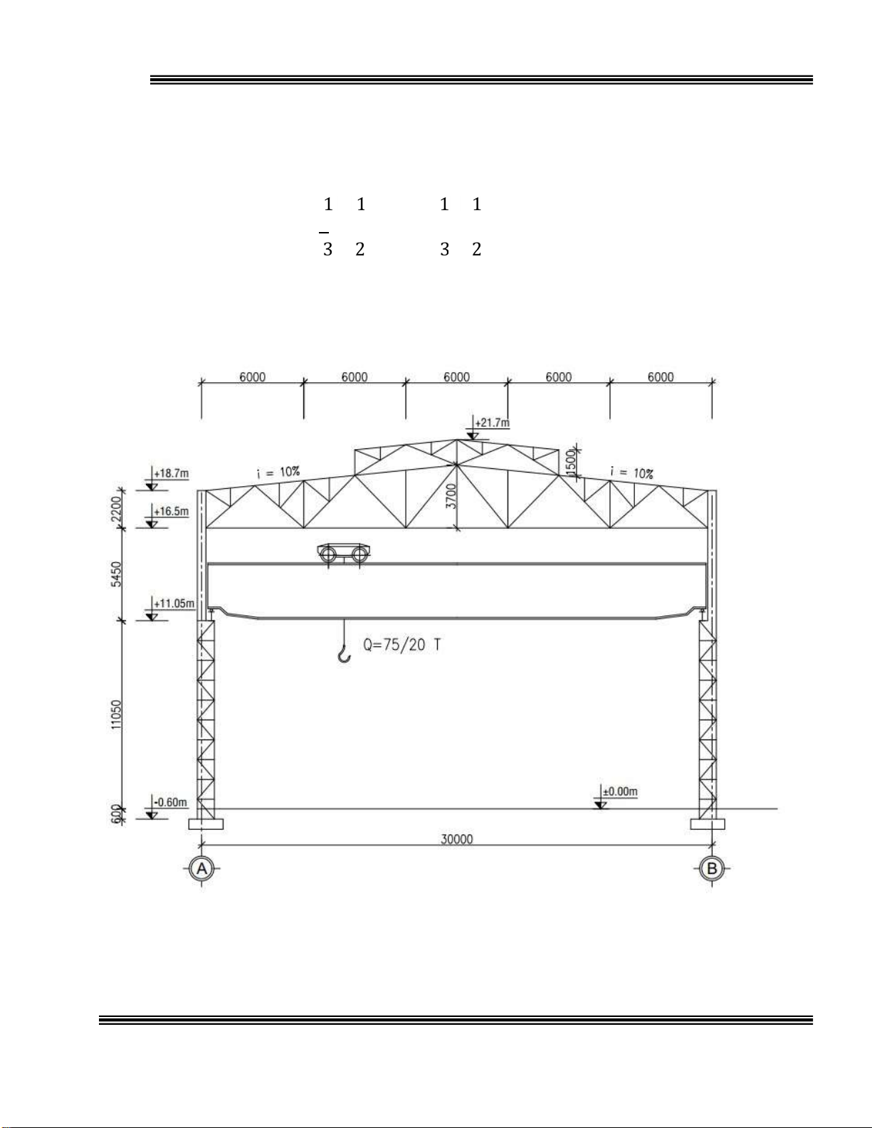 Từ số liệu thiết kế nhà L = 30 (m); sức nâng cầu trục Q = 75/20 T (nhà có 2 cầu trục, làm việc ở