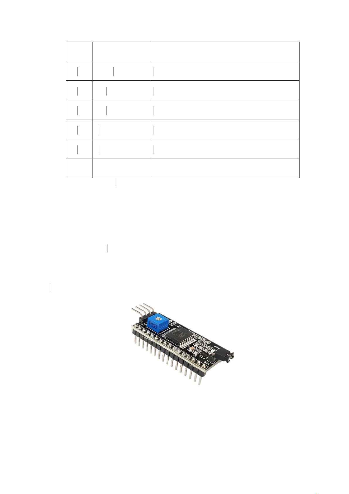 Bảng 6. Bảng mô tả chân lcd giao tiếp I2C