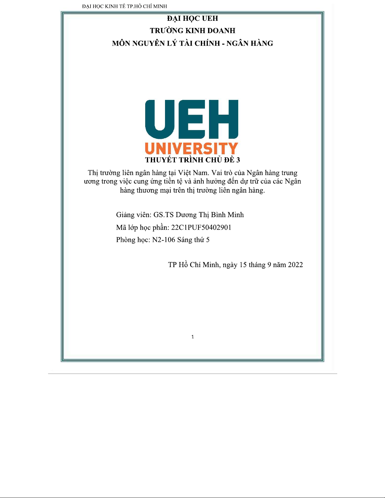 Thuyết trình CT3 - Thị Trường Liên Ngân Hàng tại VN - Mã lớp 22C1PUF