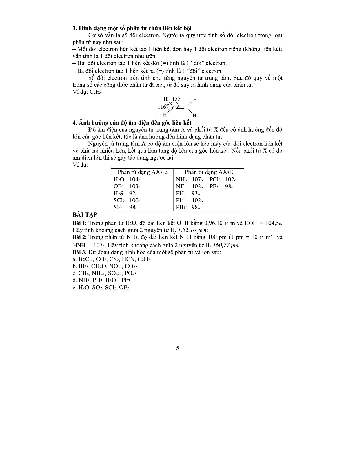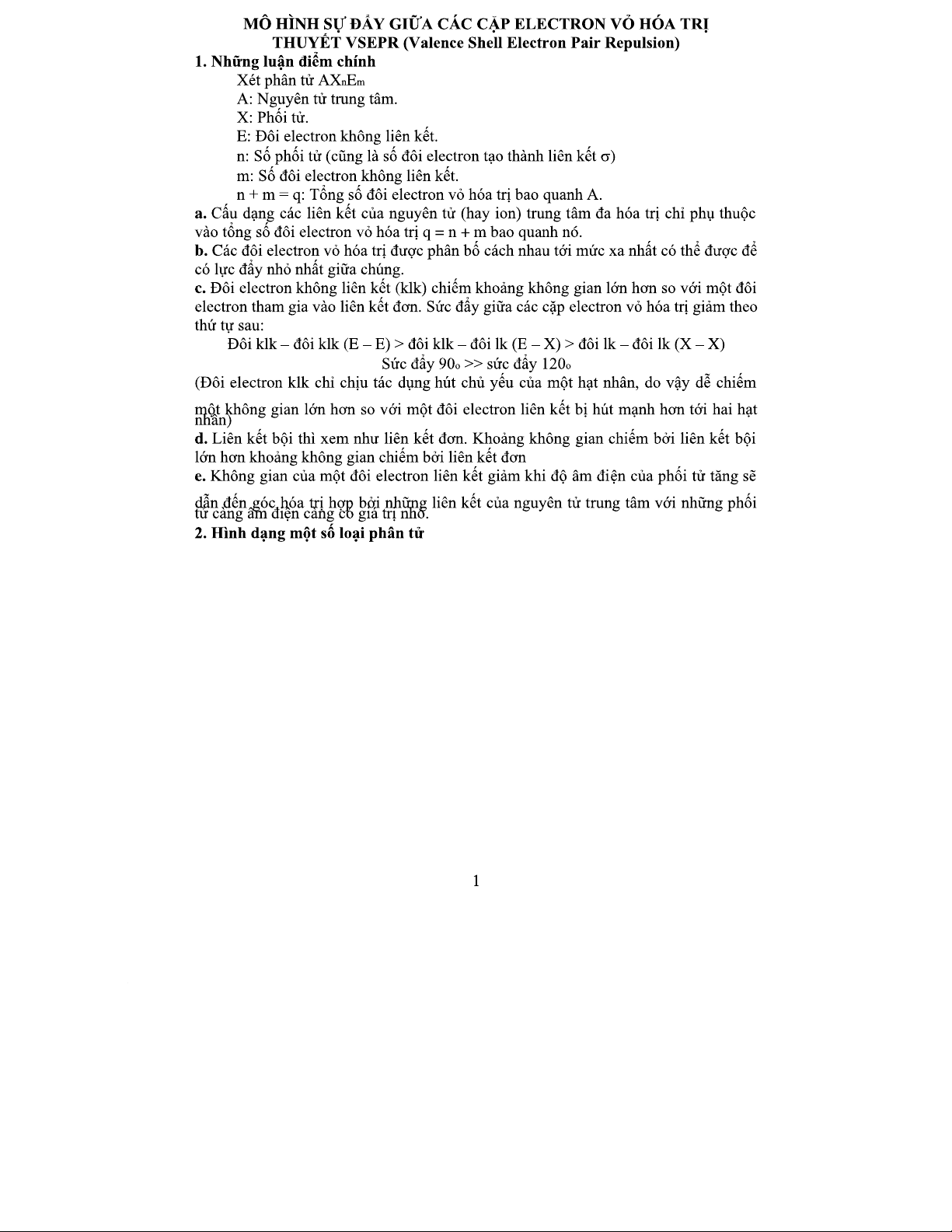 Thuyet VSEPR - Mô Hình Sự Đẩy Giữa Các Cặp Electron Vỏ Hóa Trị