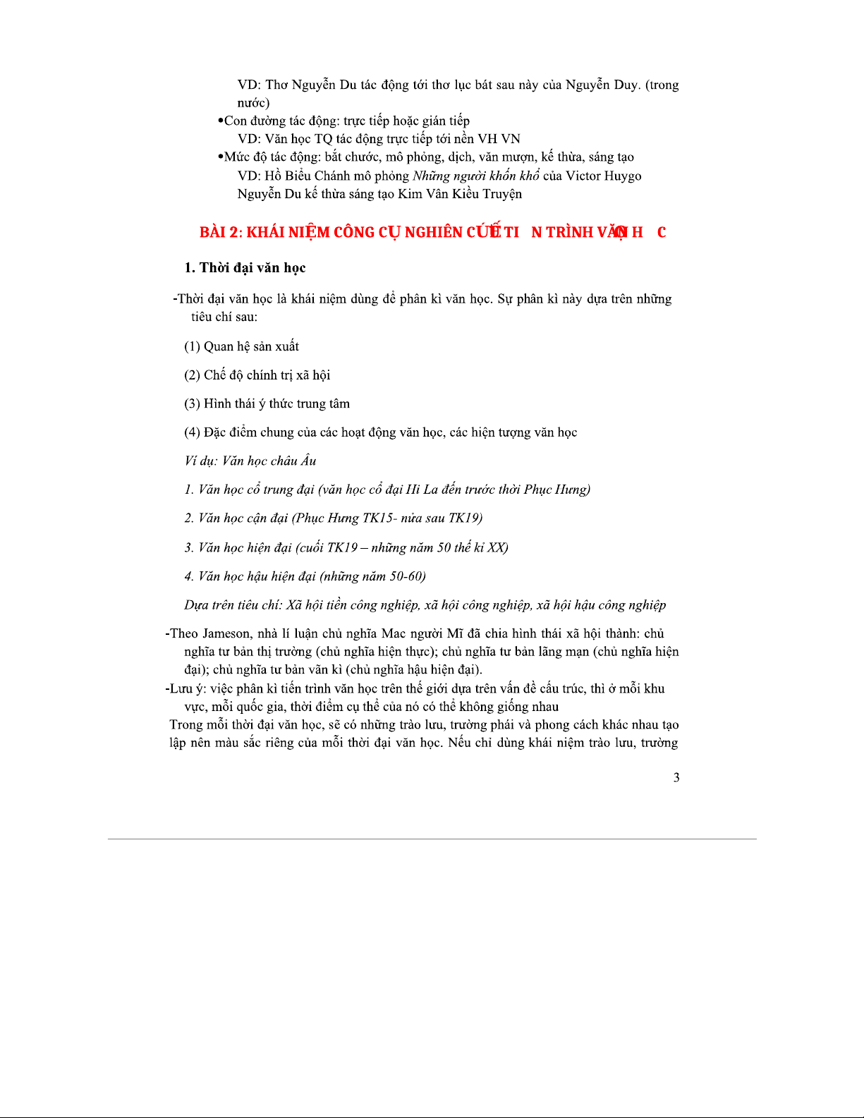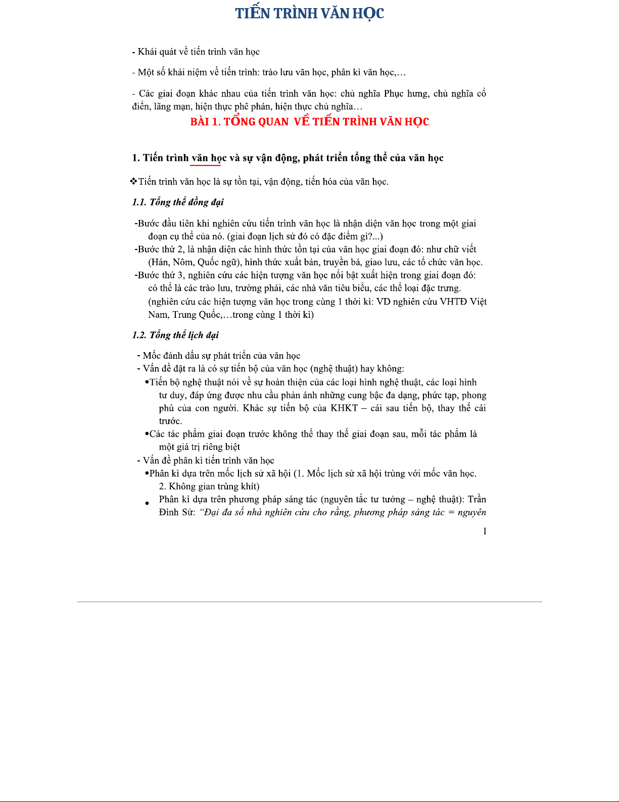 TIẾN TRÌNH VĂN HỌC: Khái Niệm và Các Giai Đoạn (bài ghi lớp)