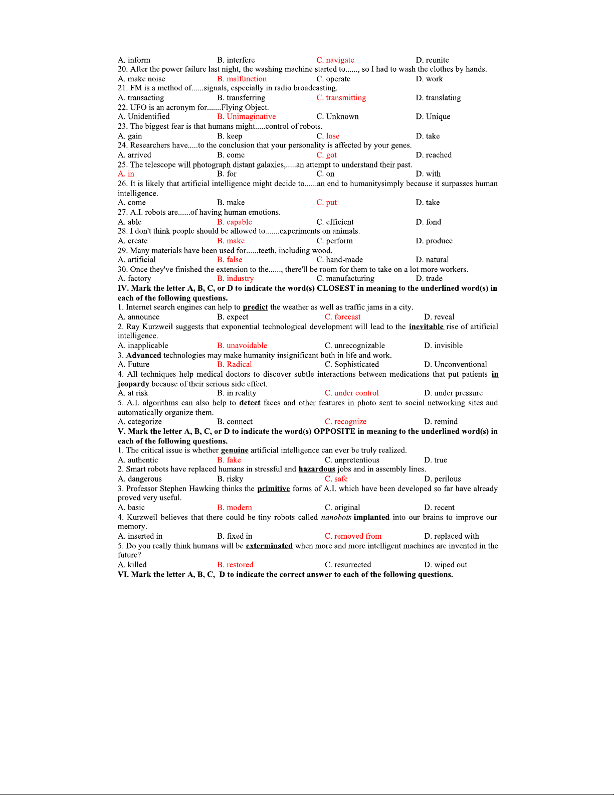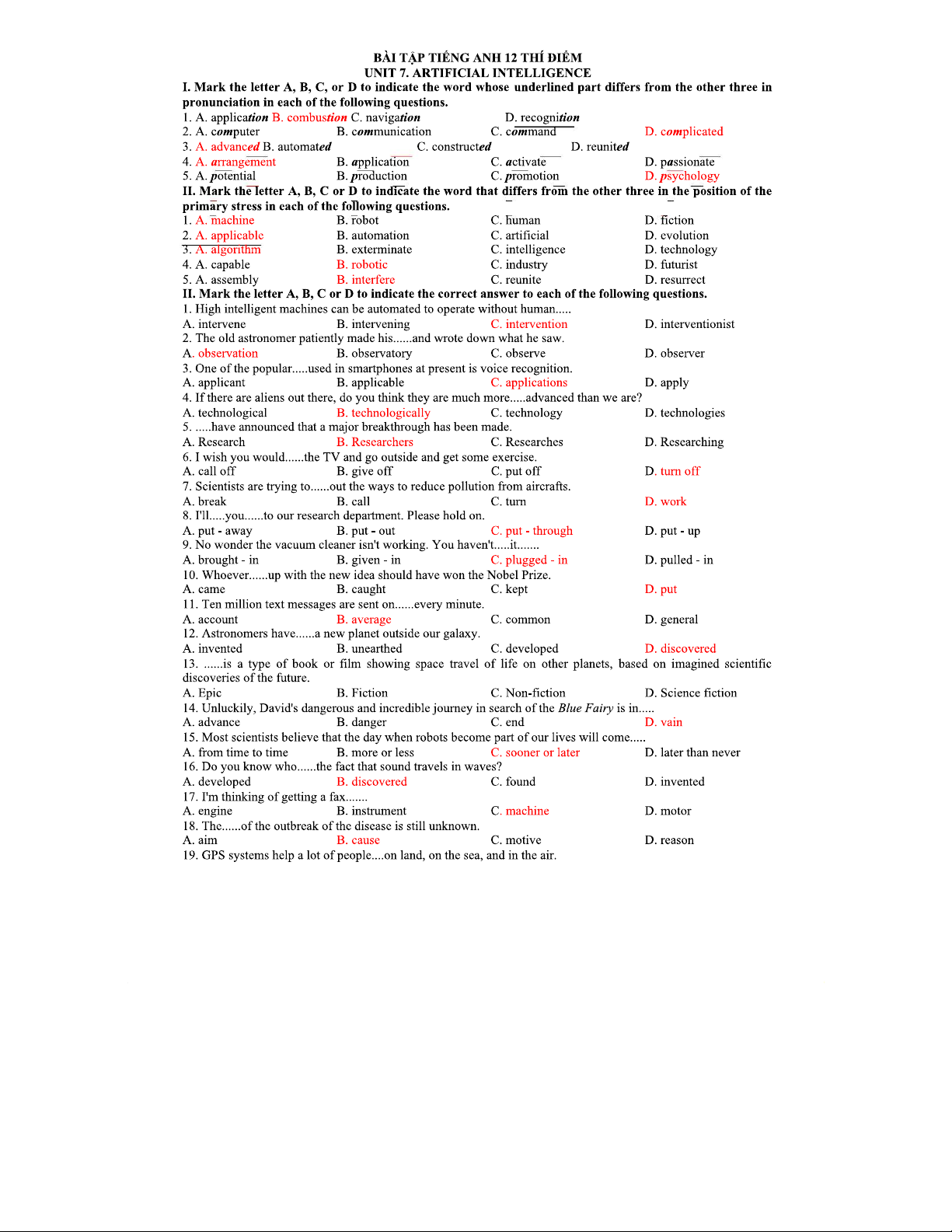 Tiếng Anh 12 - Ôn Tập Unit 7: Trí Tuệ Nhân Tạo