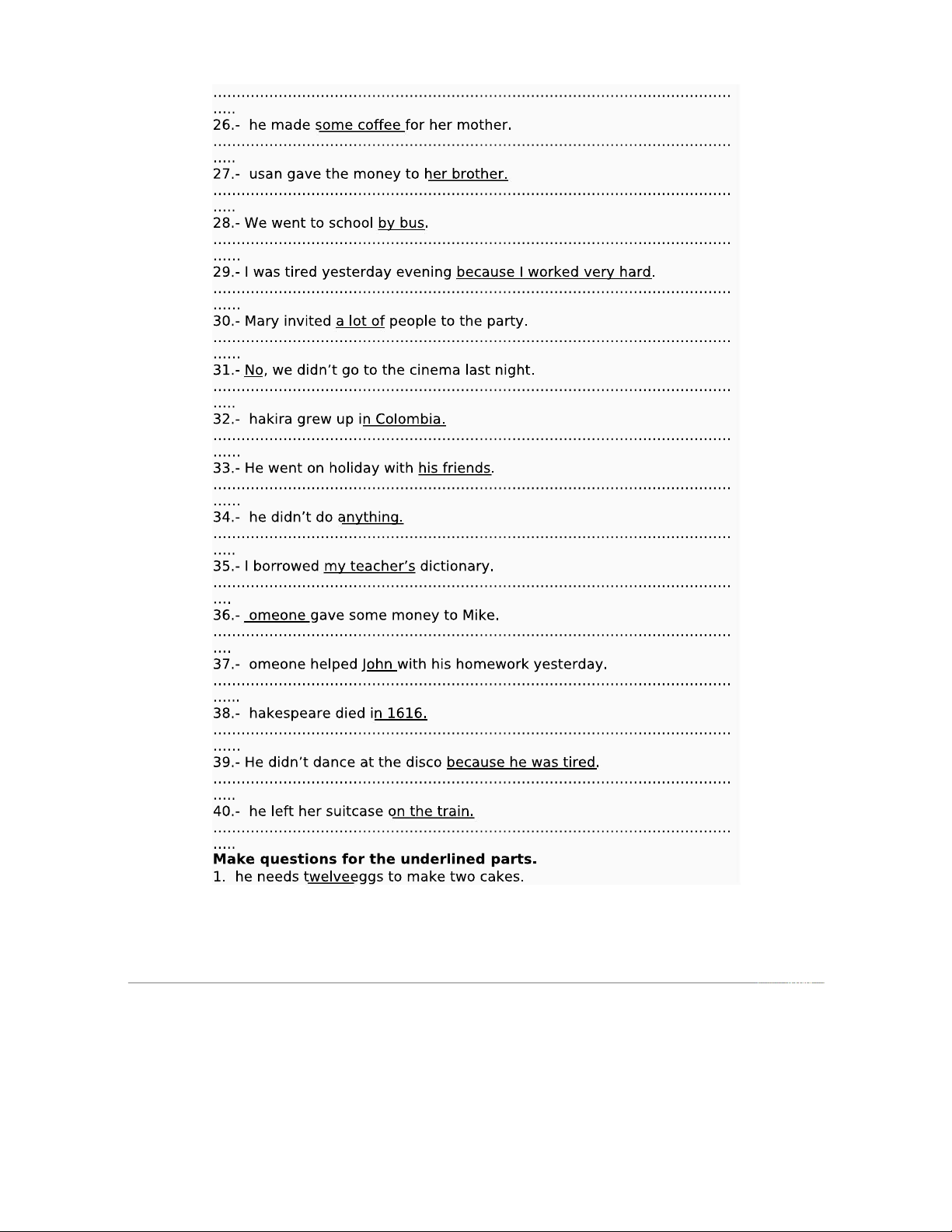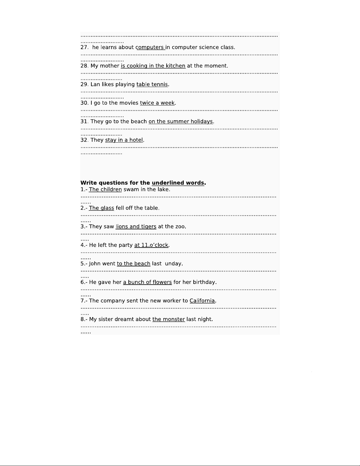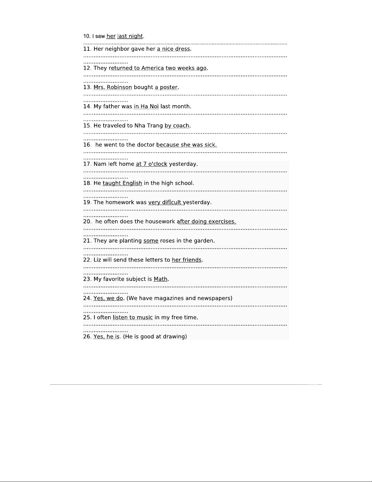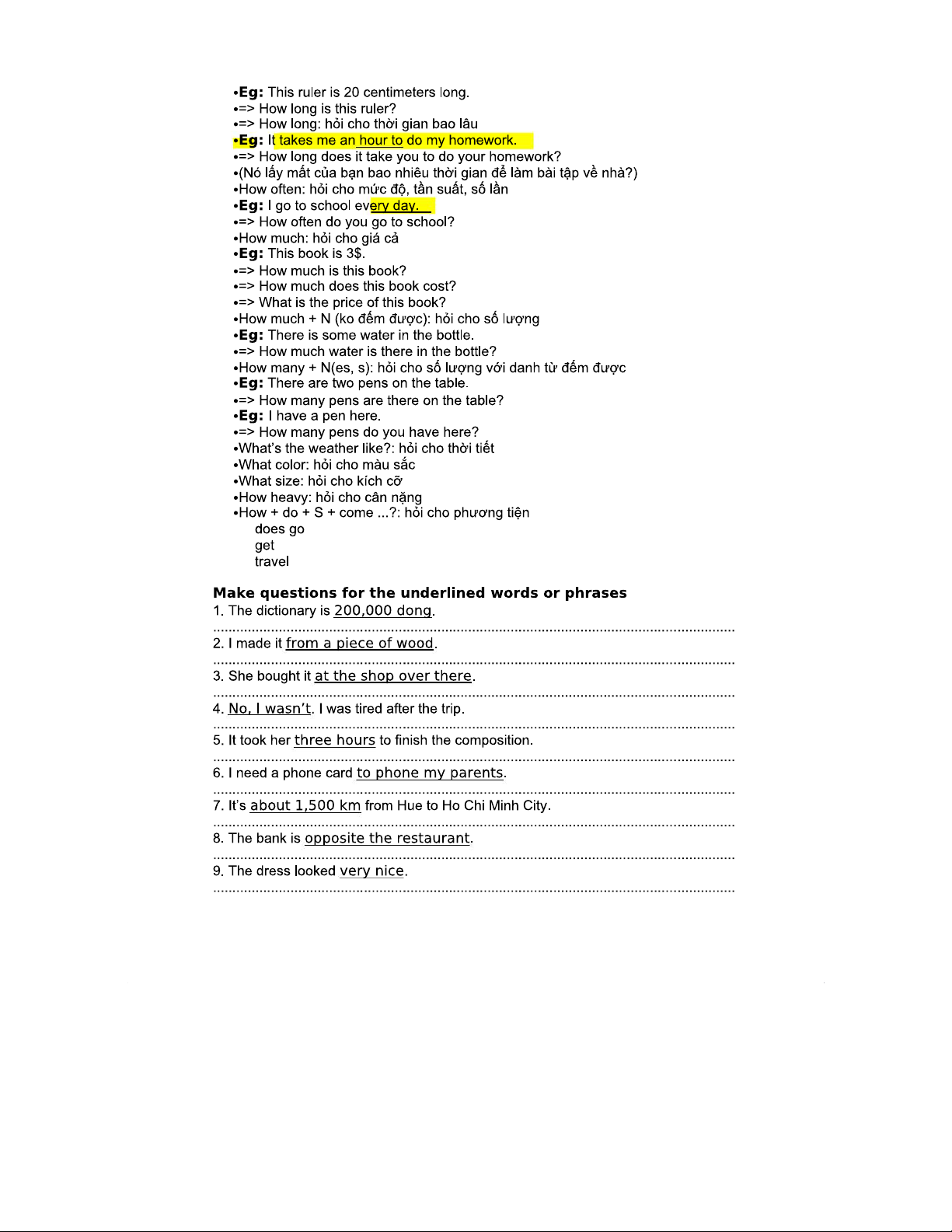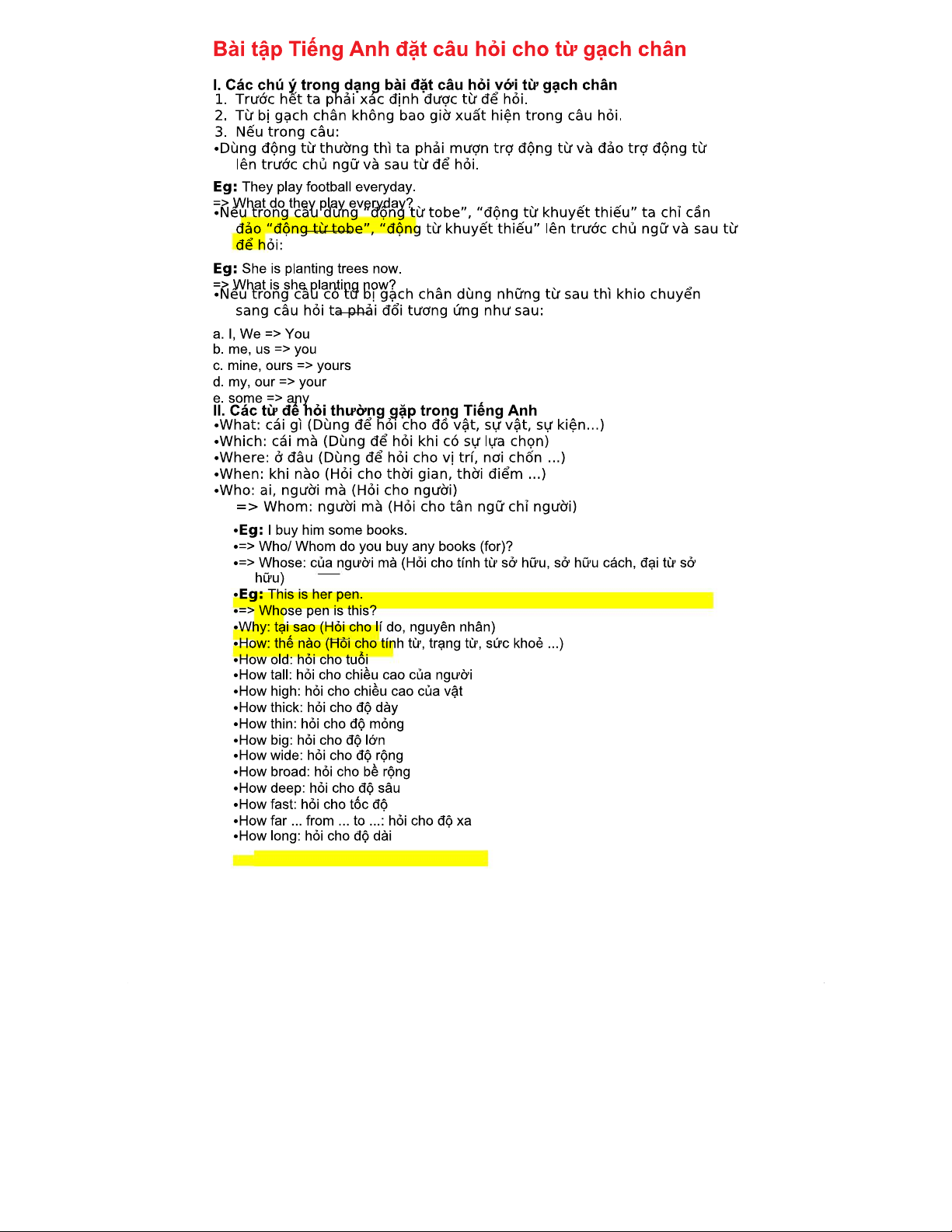 Tiếng Anh: Đặt câu hỏi cho từ gạch chân (Bài Tập)