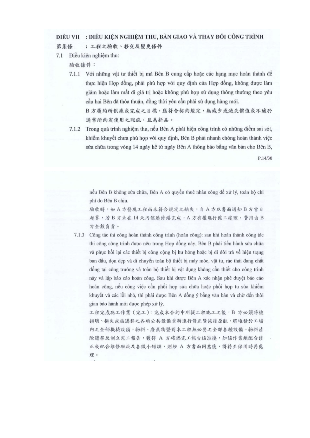 對照雙方已簽署合約第七條關於驗收、工程移交之條件規定,合約中並未訂定如業主現今所要求之「四方」驗收機制。