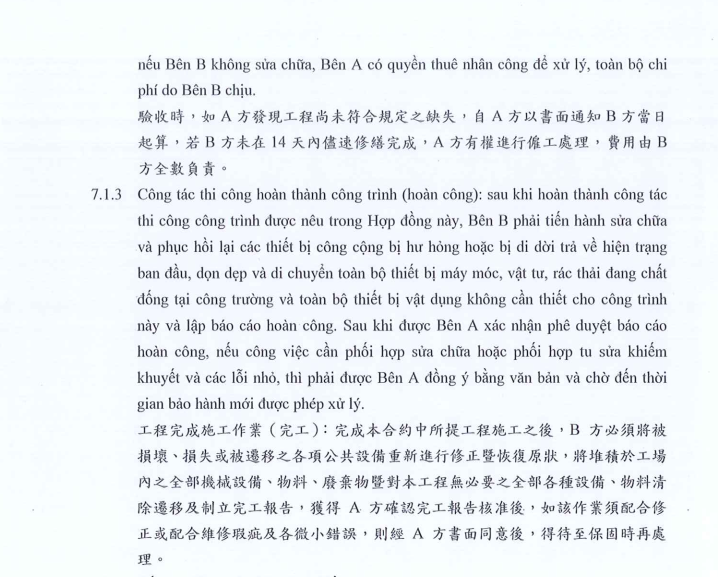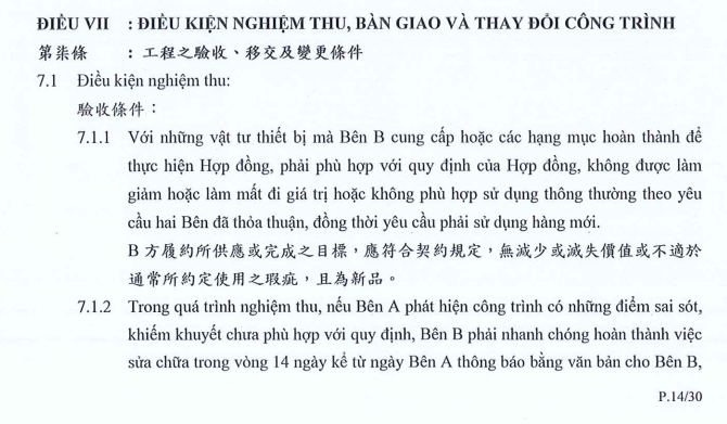 Đối chiếu Điều 7 của các hợp đồng đã ký về điều kiện nghiệm thu, bàn giao công trình, hợp đồng không có quy định về cơ chế nghiệm thu “4 bên” như yêu cầu hiện nay của Chủ đầu tư.