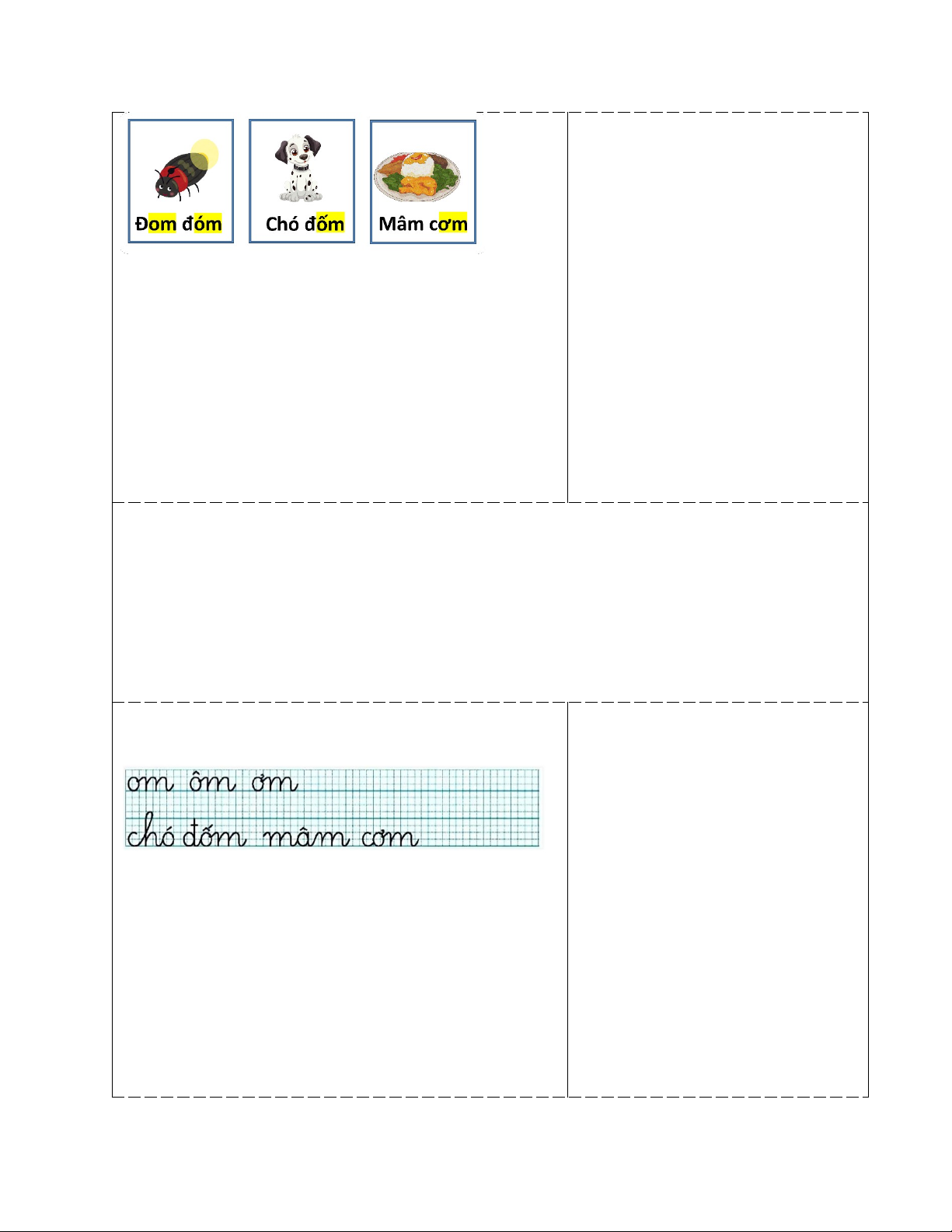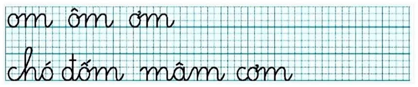 - GV hướng dẫn luyện viết vần om, ôm, ơm và luyện viết từ chó đốm. mâm cơm.