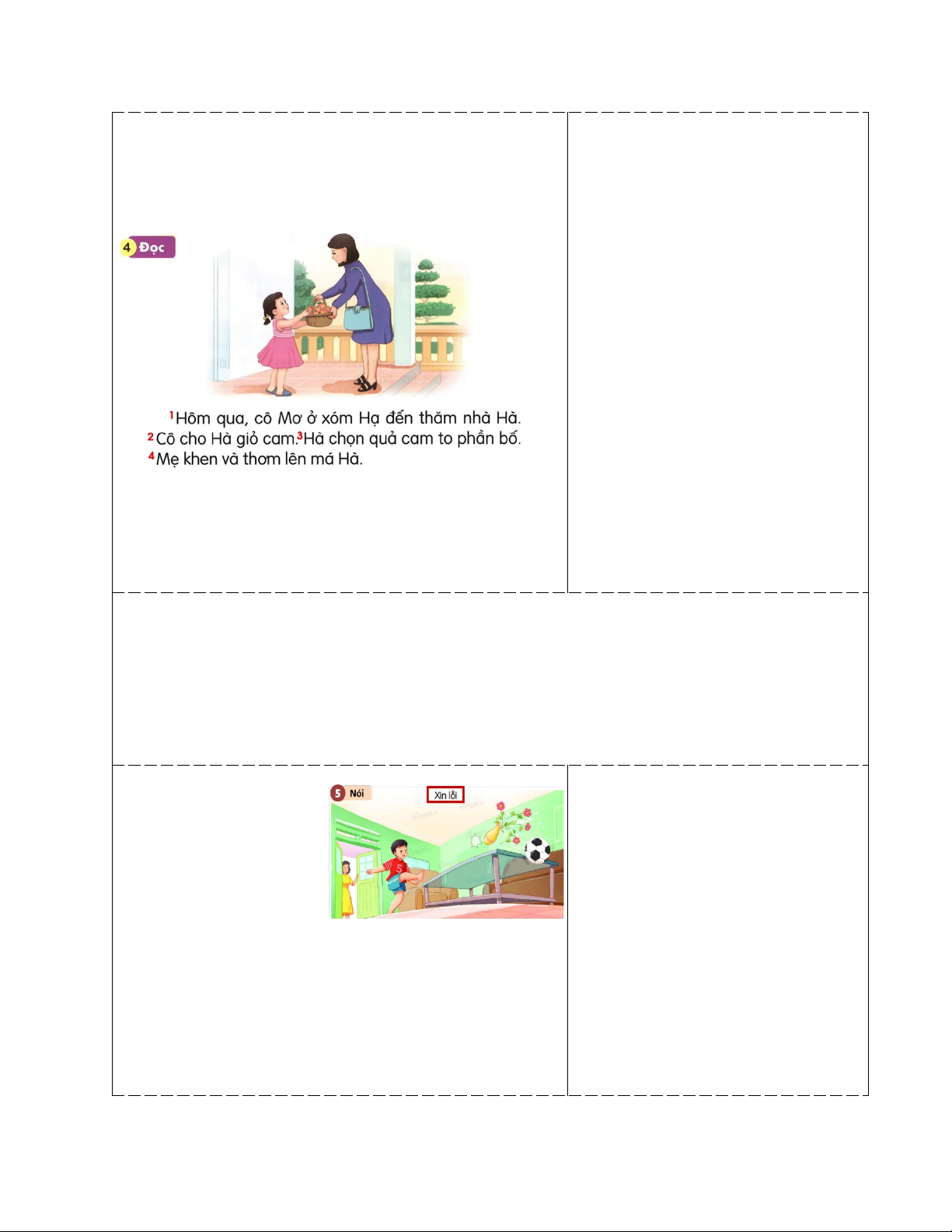 - Kĩ năng quan sát, nhận biết nhân vật và suy đoán nội dung các tranh minh họa và nói lời xin lỗi khi sai phạm.