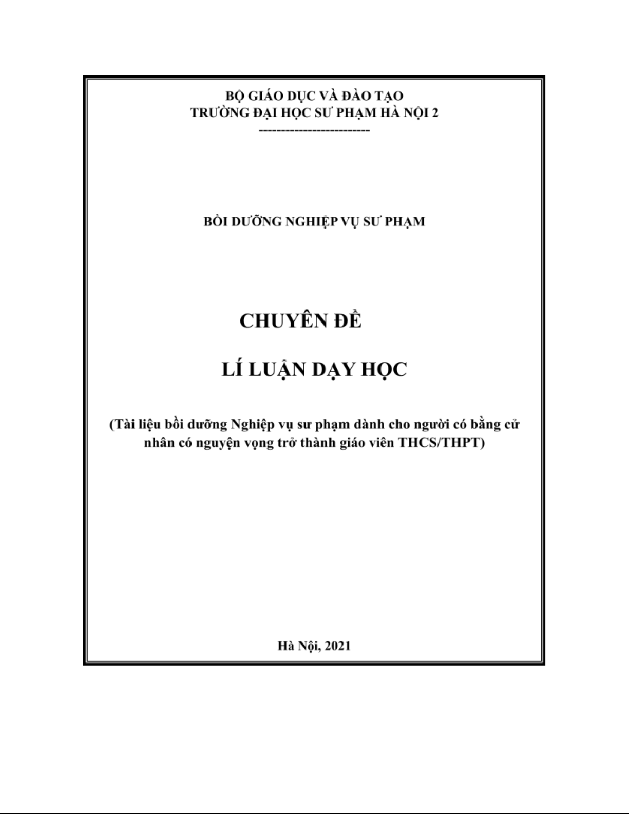 Tên học phần: Lý luận dạy học