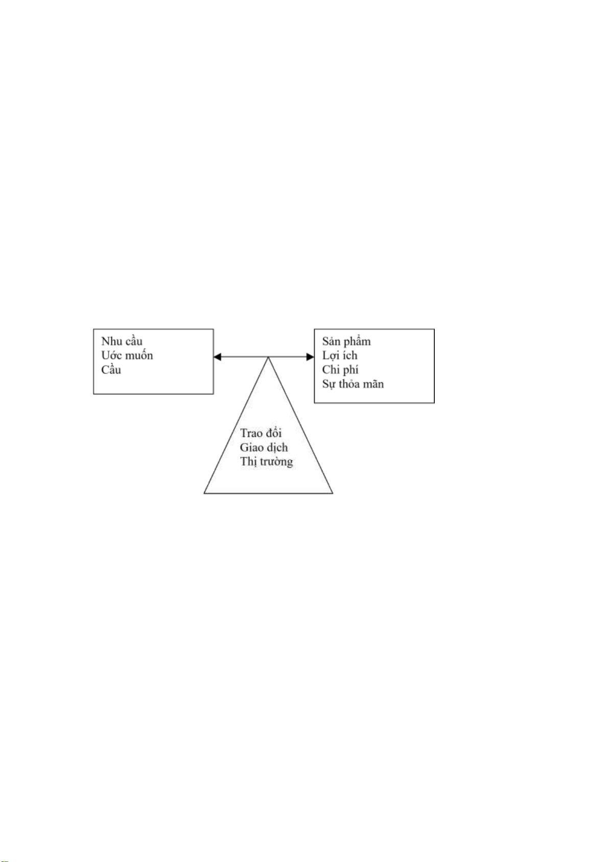 nhu cầu có khả năng thanh toán (cầu/ sức cầu), sản phẩm, lợi ích, chi phí, sự thỏa mãn, trao ổi,