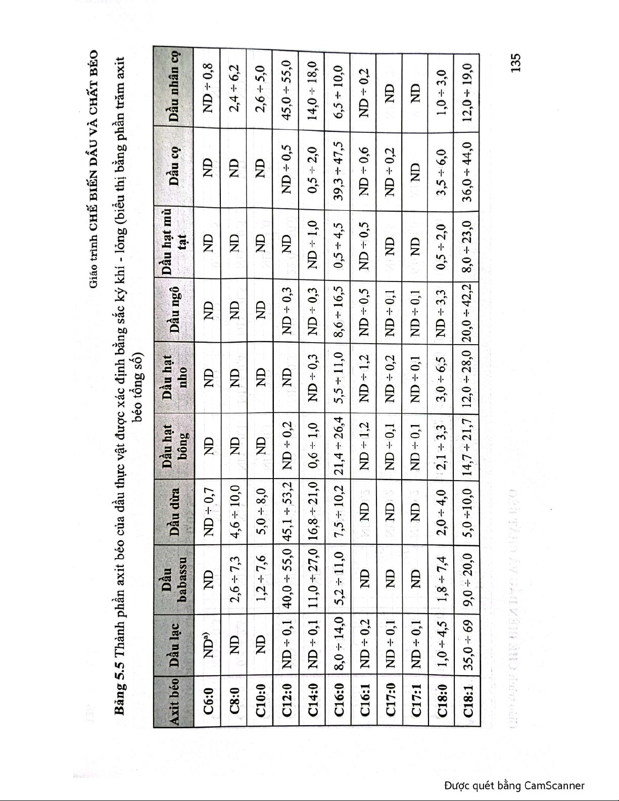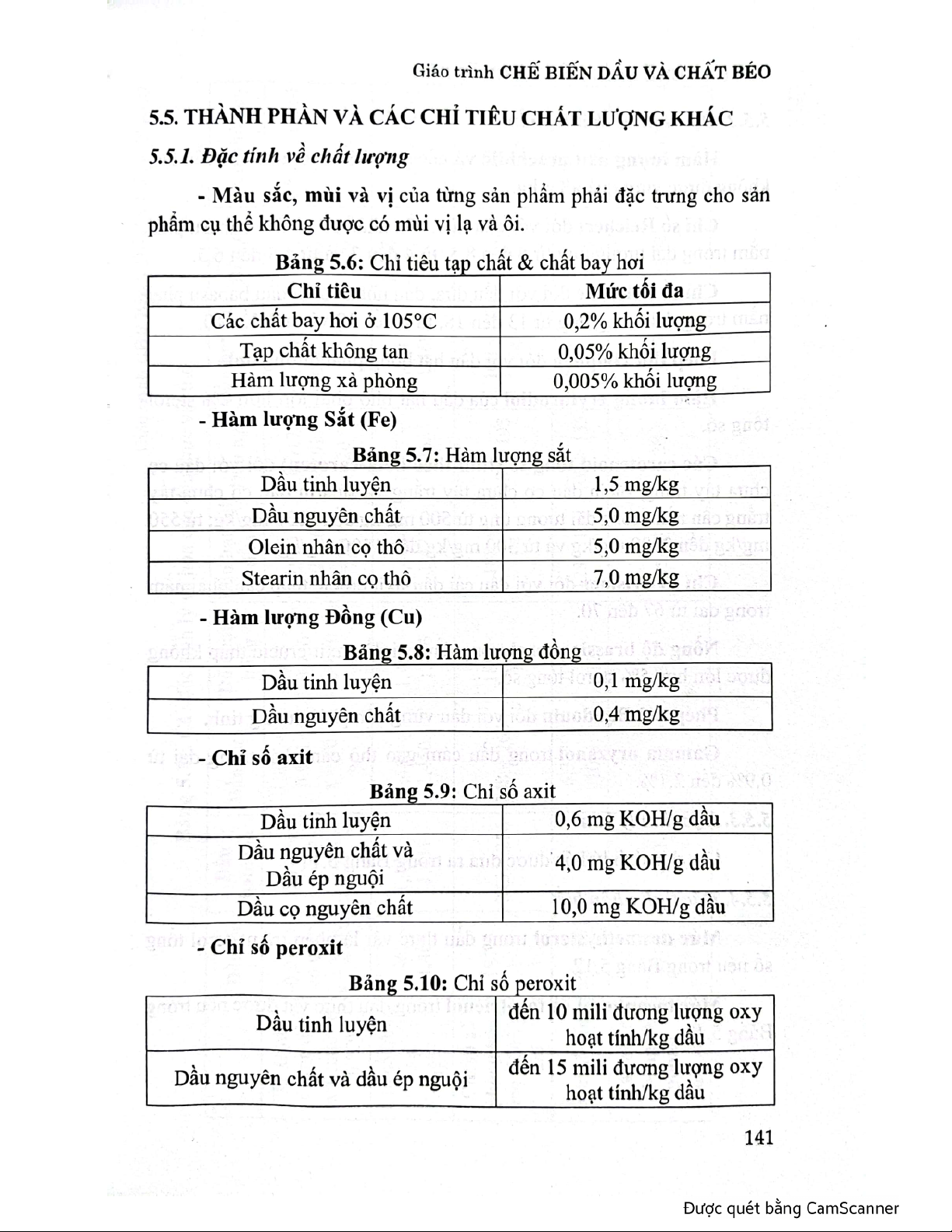Tiêu chuẩn đánh giá chất lượng dầu và chất béo trong thực phẩm | Hóa thực phẩm | Đại học Nông Lâm Thành phố Hồ Chí Minh