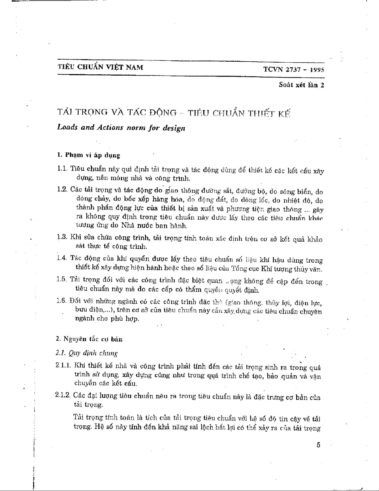 Tiêu Chuẩn Việt Nam - Tải trọng và tác động tiêu chuẩn thiết kế