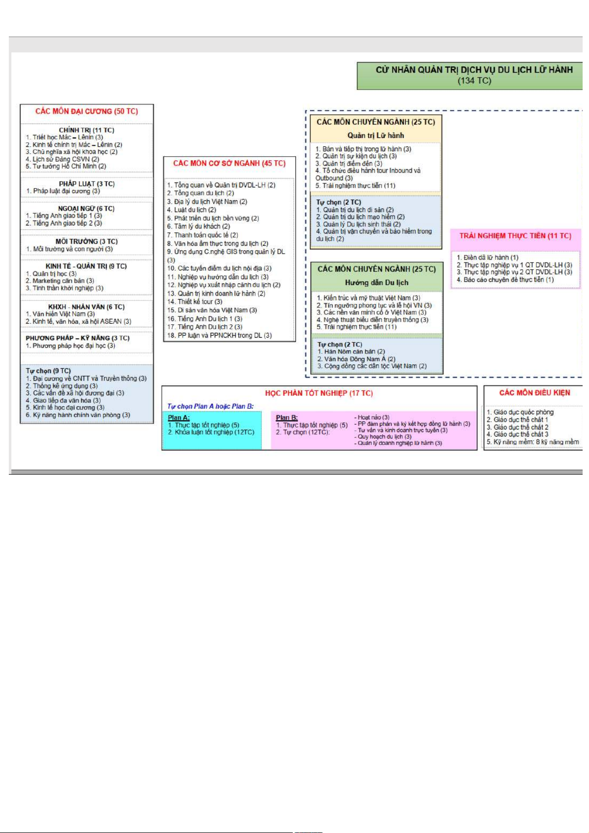 TRA430 Tư vấn và kinh doanh trực tuyến TC 3 7 TRA424 Quy hoạch du lịch TC 3 8