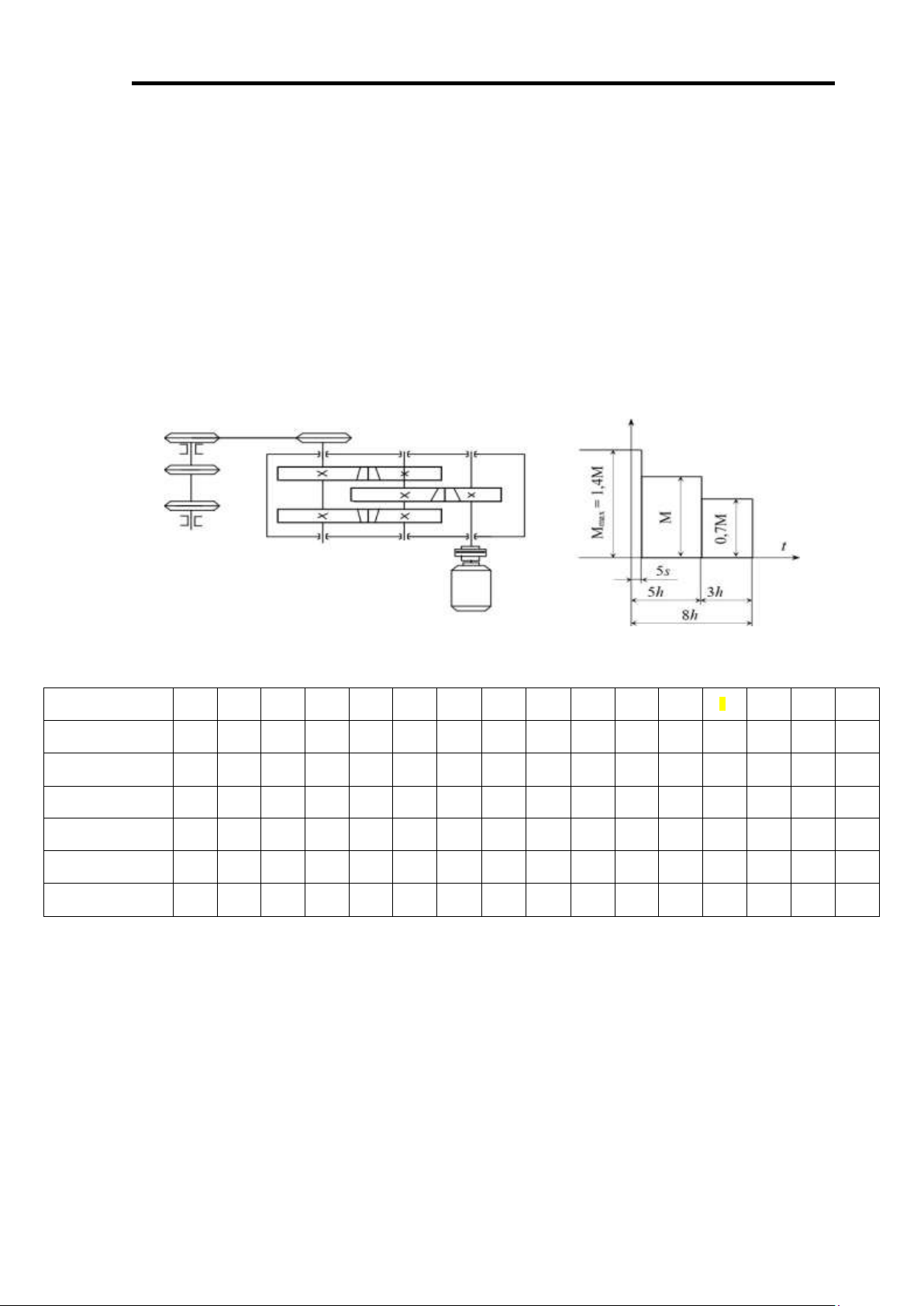 Bước xích tải t (mm)  38,1  38,1 38,1  38,1  24,5  24,5  24,5  24,5  24,5 31,75 31,75 31,75 24,5  24,5 31,75 31,75  Số răng đĩa xích tải  24  28  22  24  26  24  30  26  20  30  30  30  28  30  30  30  Thời hạn phục vụ  (năm)  5  4oke  4  5  5  4  5  4  4  4  4  5  5  4  4  4  Sai số vận tốc cho  phép (%)  4  5  4  5  5  4  5  5  4  4  5  4  5  5  5  4