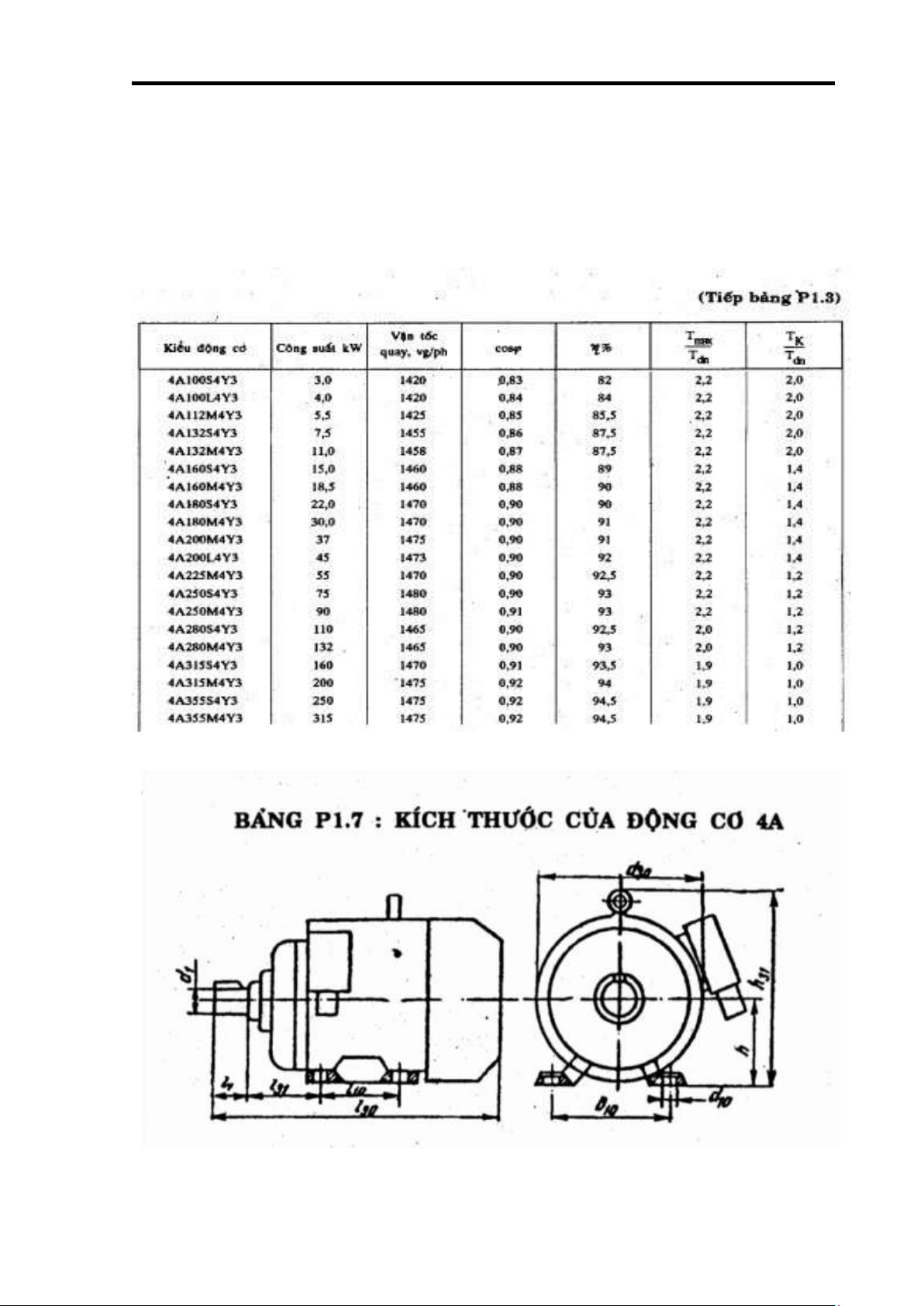 21 sách (I) nsb=uc×nlv=32×44,09=1419,69(vòng/phút)  6. Chọn động cơ: