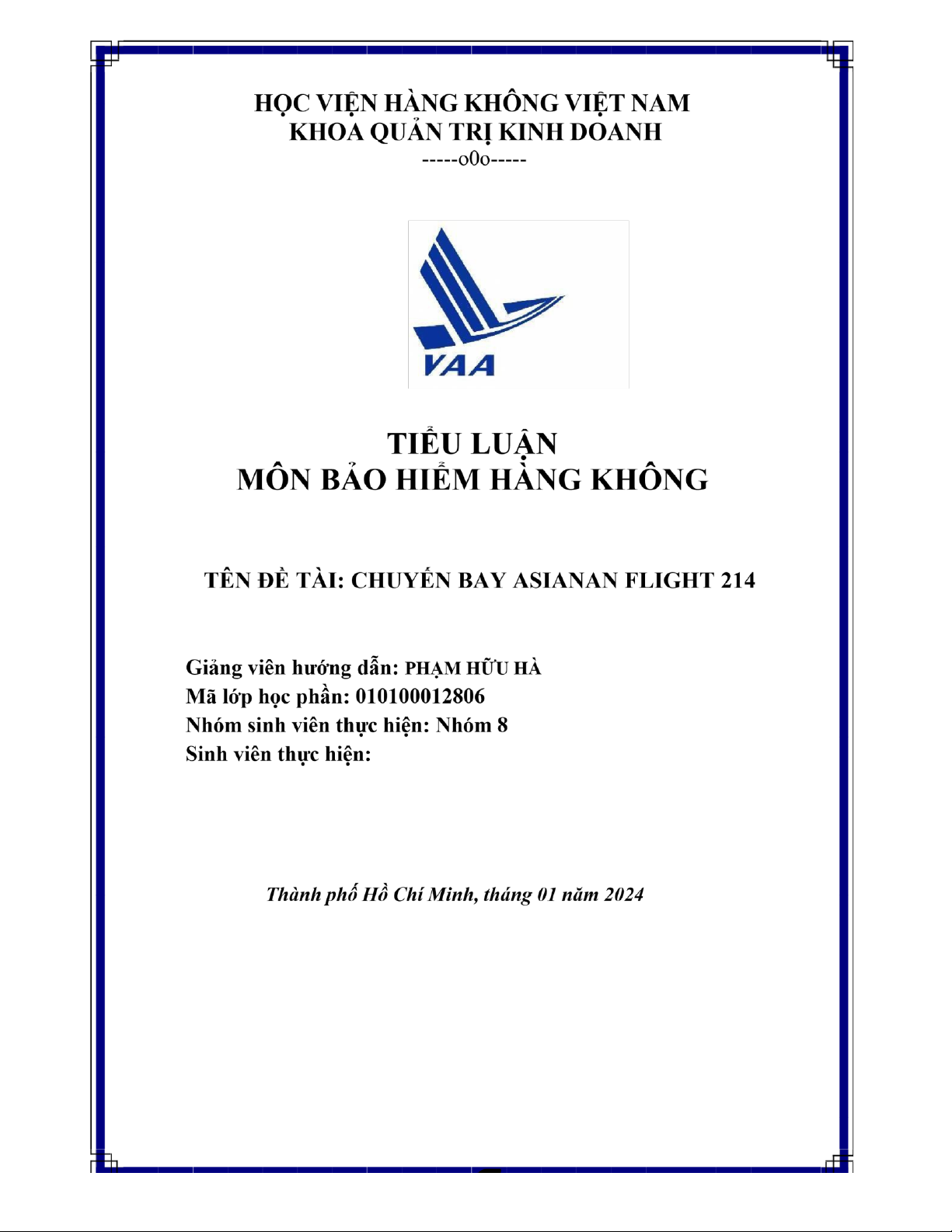 Phạm Hữu Hà; nhóm em xin phép chọn chủ đề trình bày là “ Chuyến bay Asiana