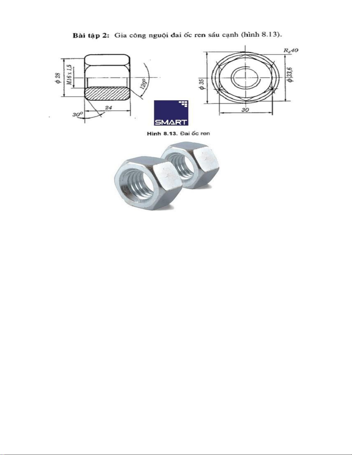 vật liệu sử dụng để làm đai ốc là loại thép tròn Ø 40 tiện tạo hình chi tiết Ø 35×24,vát mép cạnh ngoài. lOMoARcPSD| 61551247