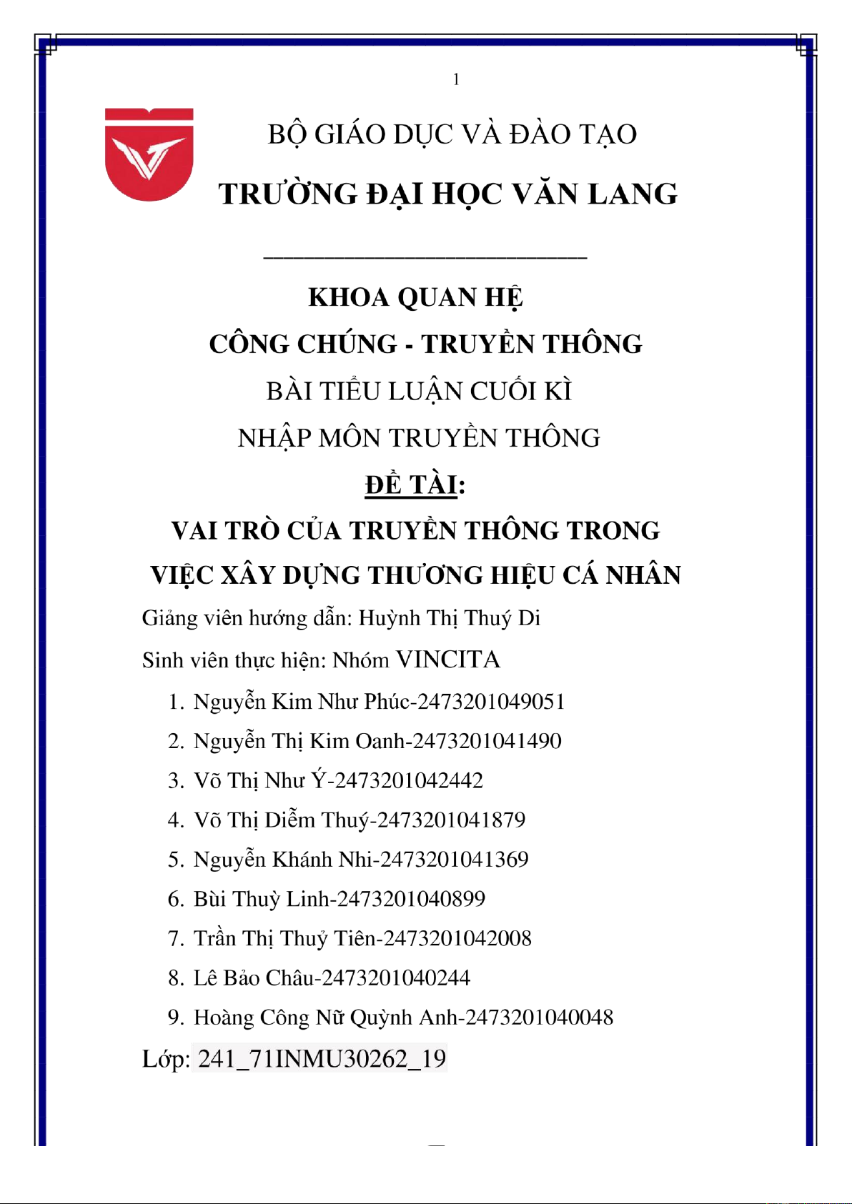 thương hiệu cá nhân bền vững. Đồng thời, ề tài này sẽ giúp chúng tôi có thể i sâu
