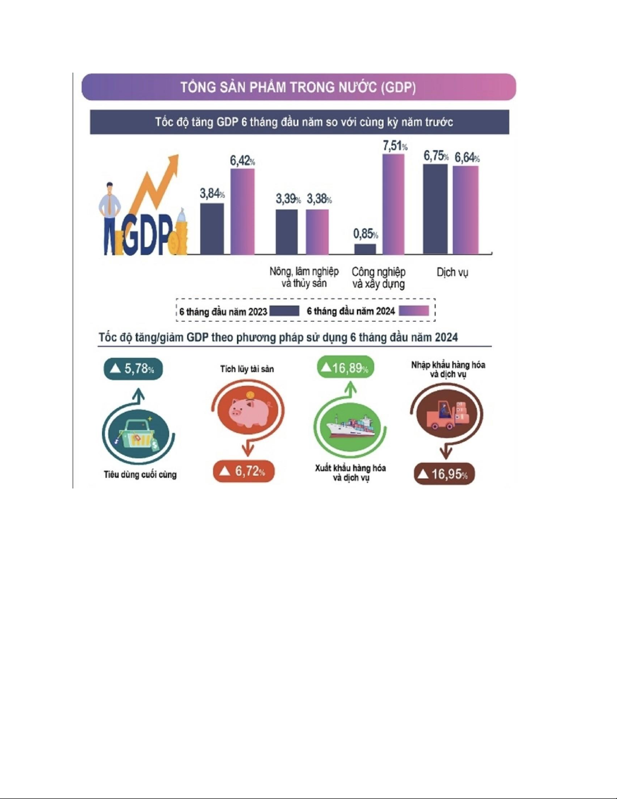 năm 2024 thì có sự giảm nhẹ ước đạt 6,64% , thấp hơn khoảng 0.11% so với GDP