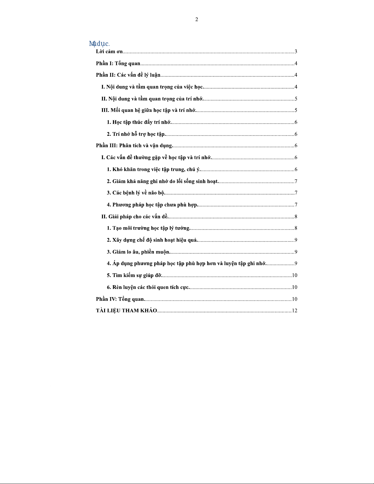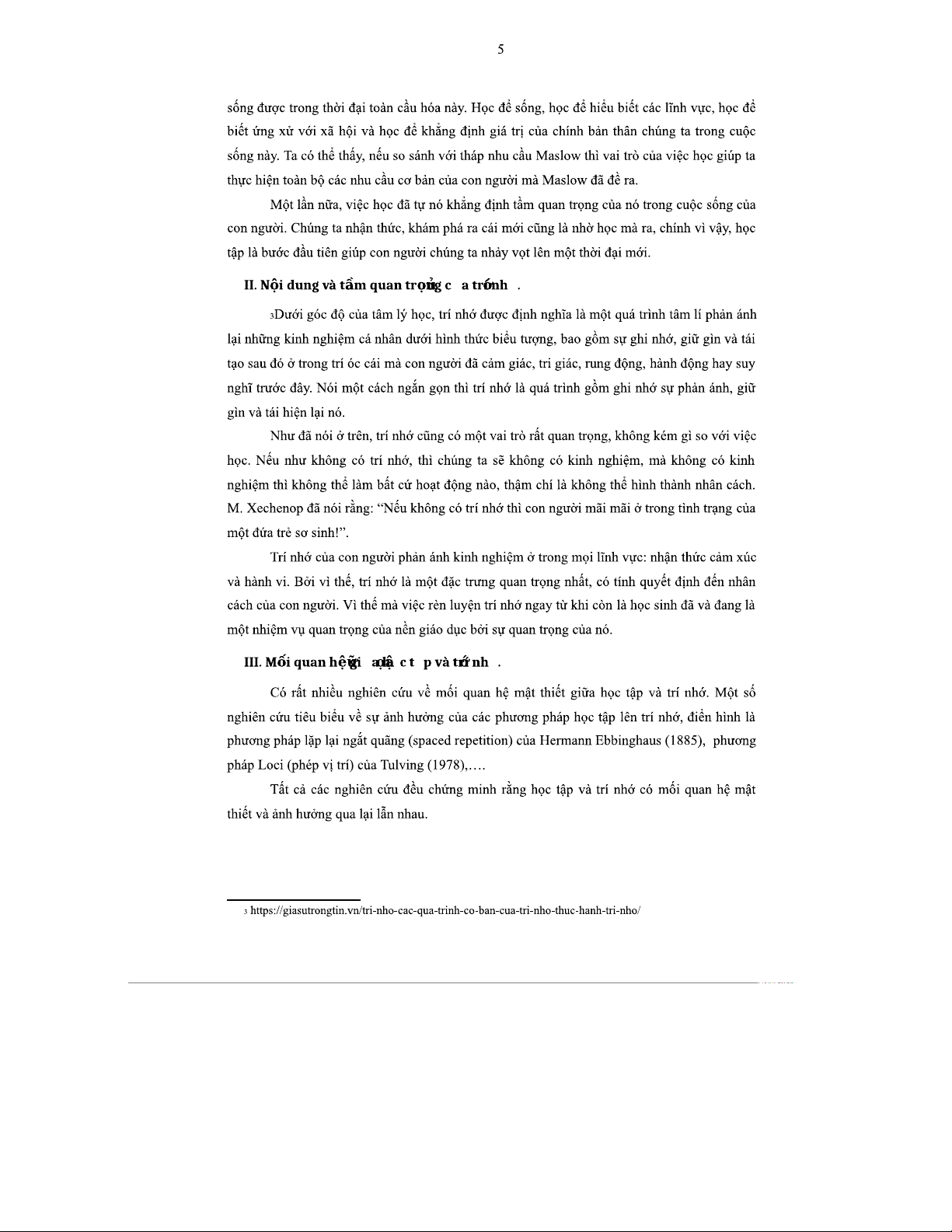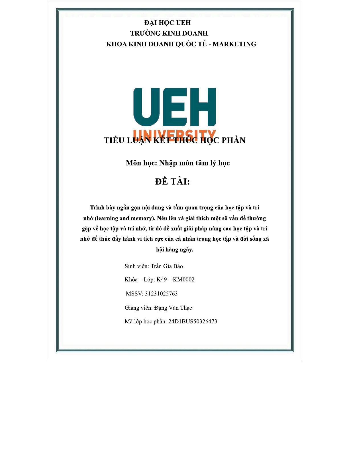Tiểu Luận Cuối Kỳ Tâm Lý Học: Tầm Quan Trọng Của Học Tập Và Trí Nhớ