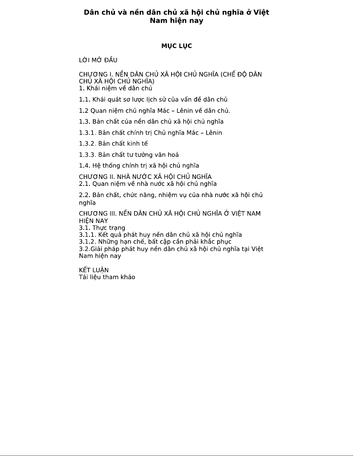Tiểu luận: Dân chủ và XHCN ở Việt Nam Hiện Nay (Chính trị 101)