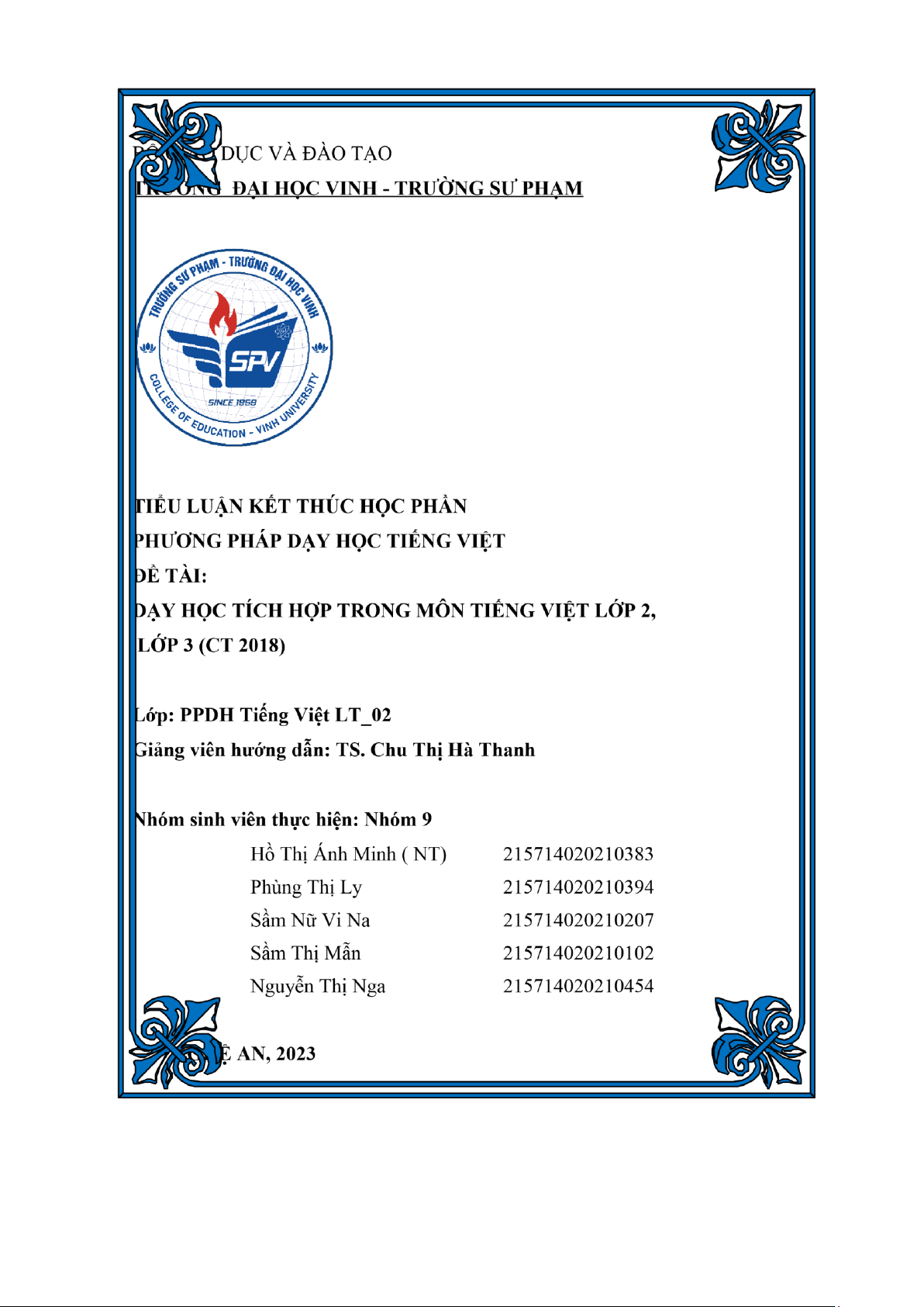 2018) - Xây dựng quy trình thiết kế dạy học tích hợp trong môn Tiếng Việt lớp 2, 3(CT  2018)  -