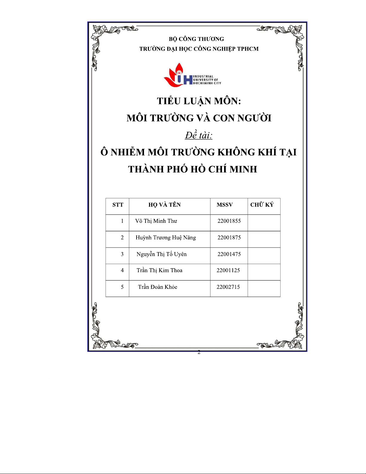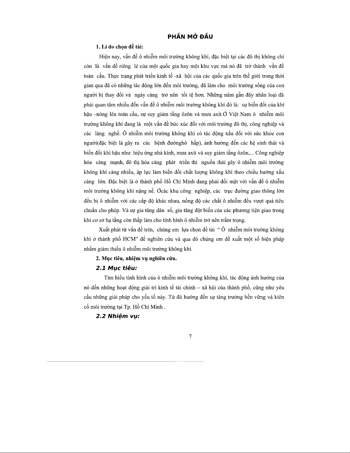 Tiểu luận DHDI18AQN: Ô nhiễm môi trường không khí tại TP HCM