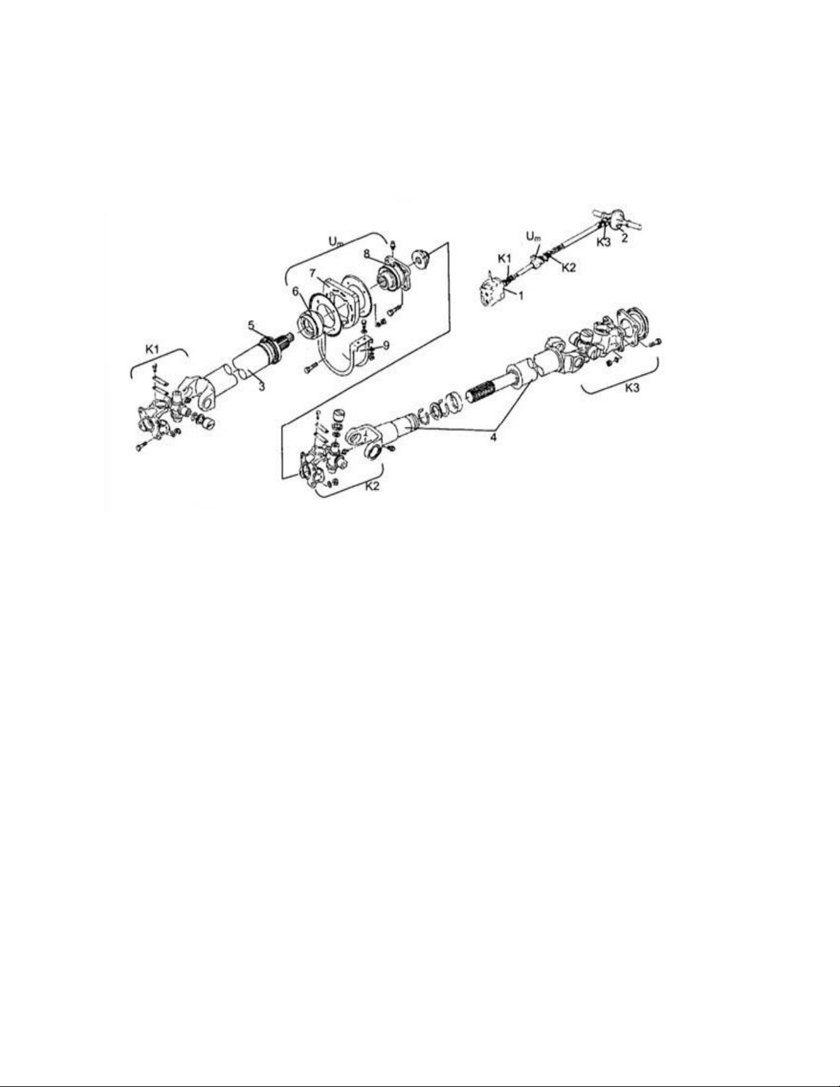Km. Đoạn trục 4 nối giữa khớp K1 với cầu xe 2 bằng mặt bích 5. Cầu xe bố trí liên