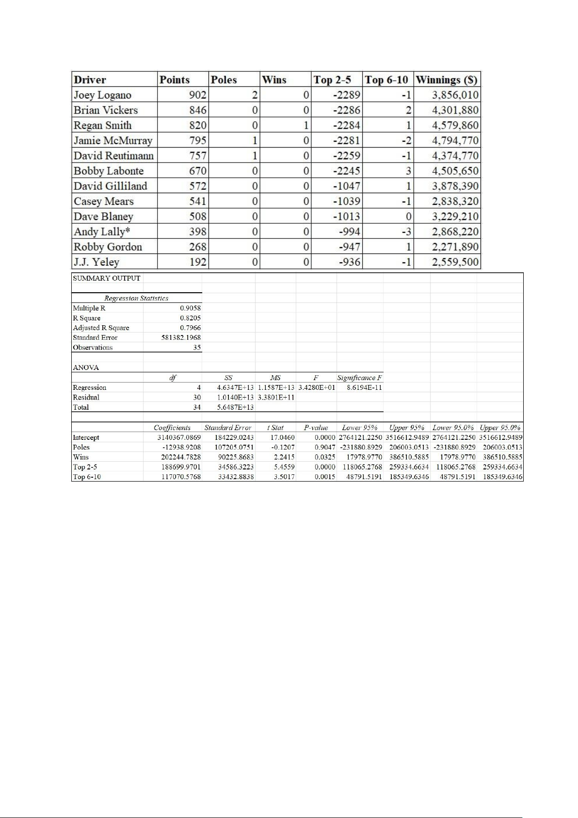 phục thuộc Winnings với 4 biến độc lập Poles, Wins, Top5, Top10. lOMoAR cPSD| 61601590