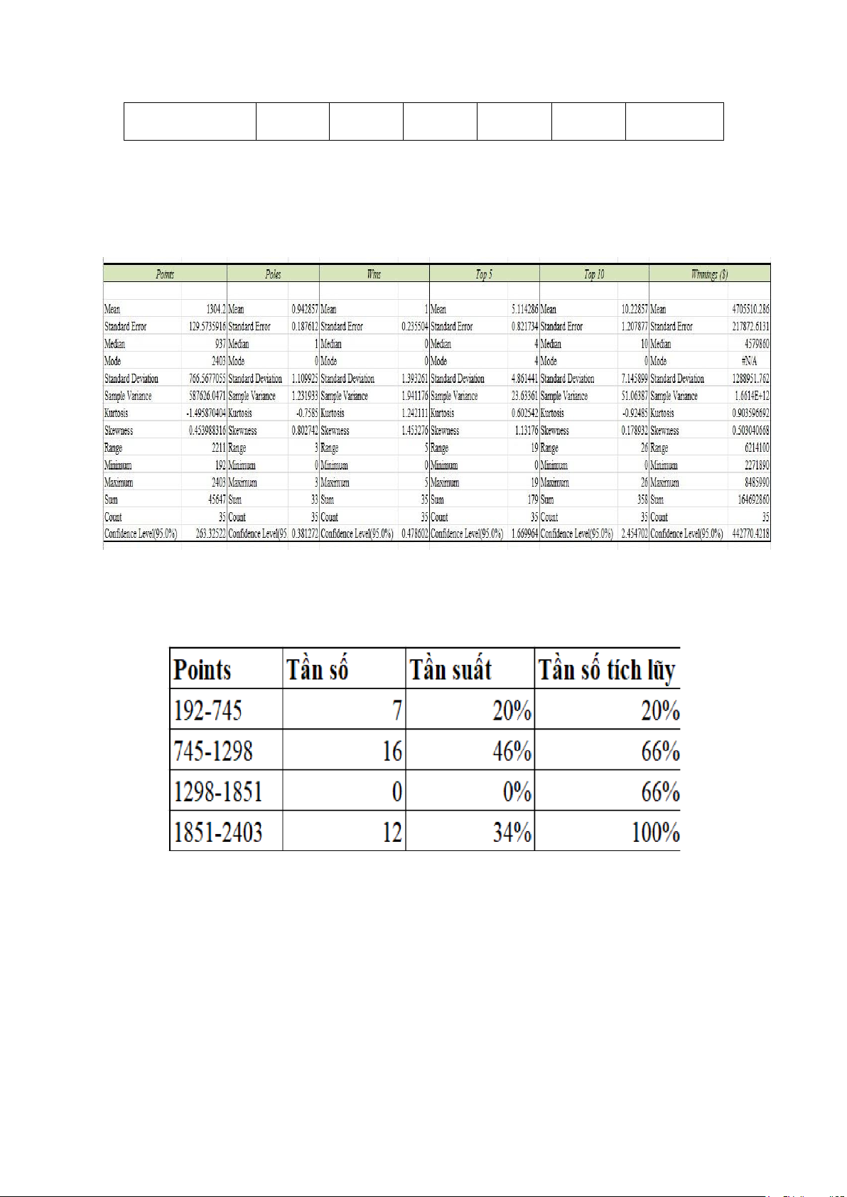 1.2.1. Điểm số (Points) lOMoAR cPSD| 61601590 % % % % % % % % % % % Tần số tích lũy Nhận xét: