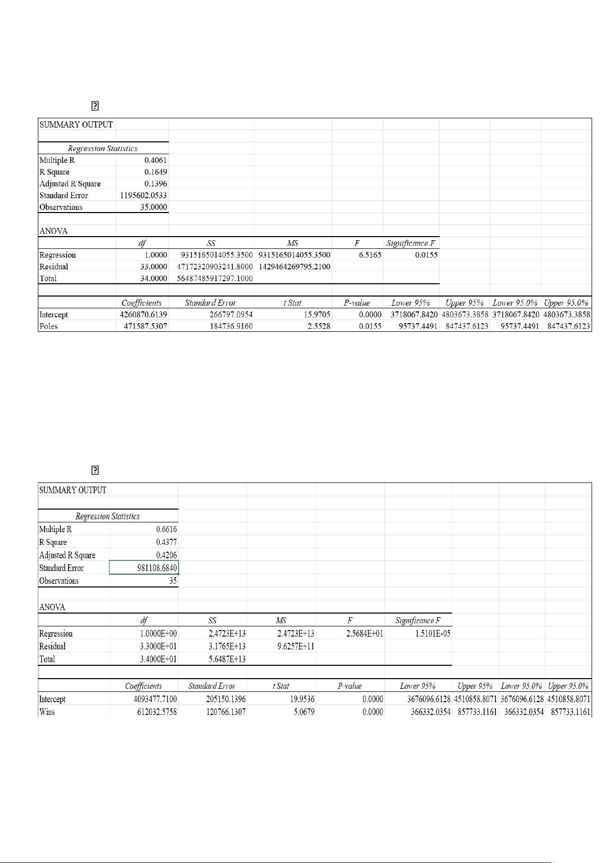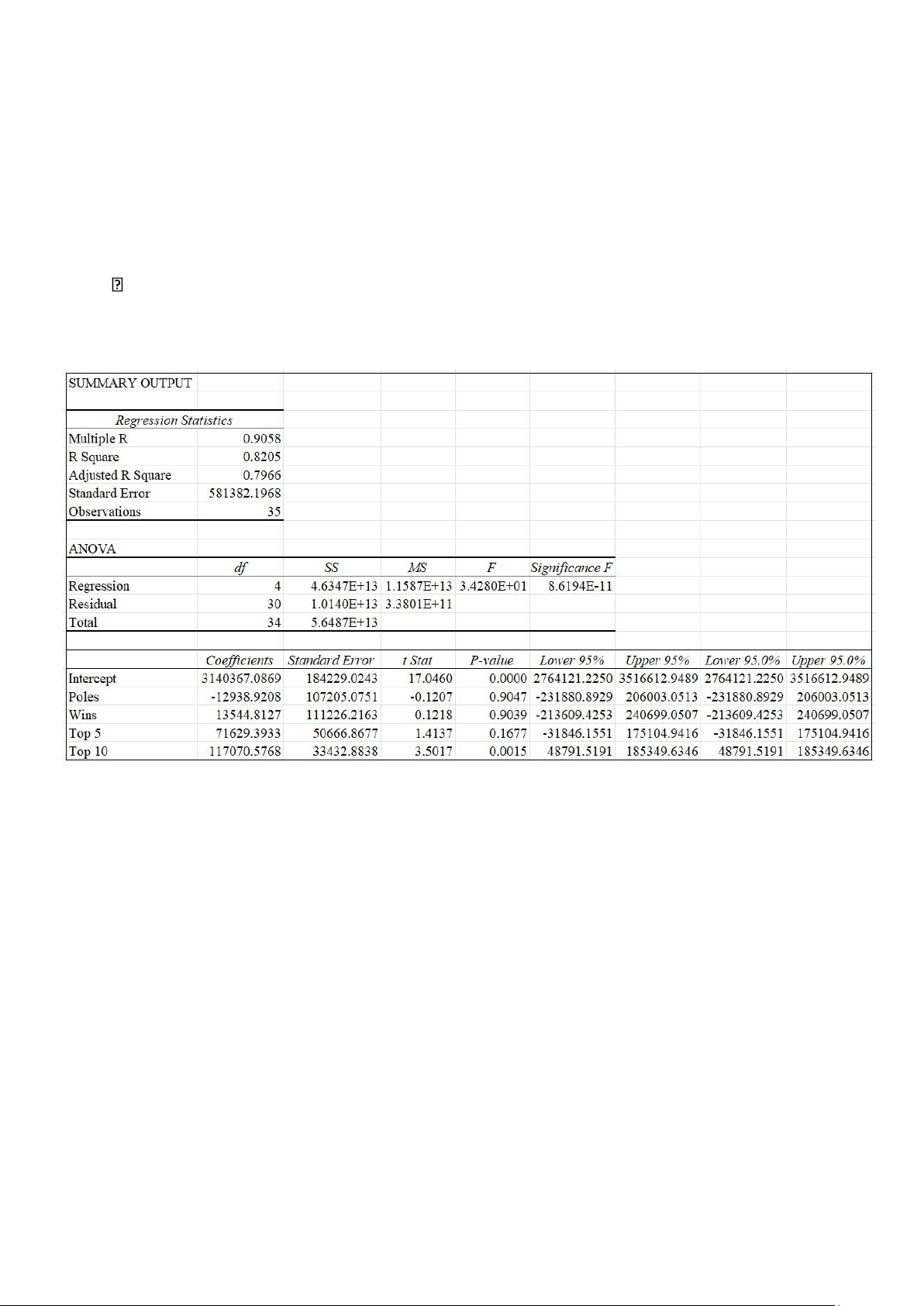 - X1, X2, X3, X4 lần lượt là các biến độc lập Poles, Wins, Top 2-5, Top 6-10 lOMoAR cPSD| 61601590 - Phương trình hồi quy:
