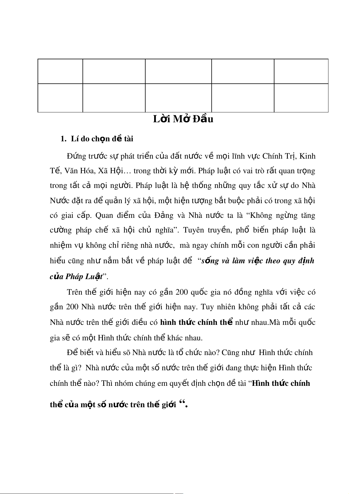 ế định chọn đề tài “Hình thức chính thể của m t ộ s n