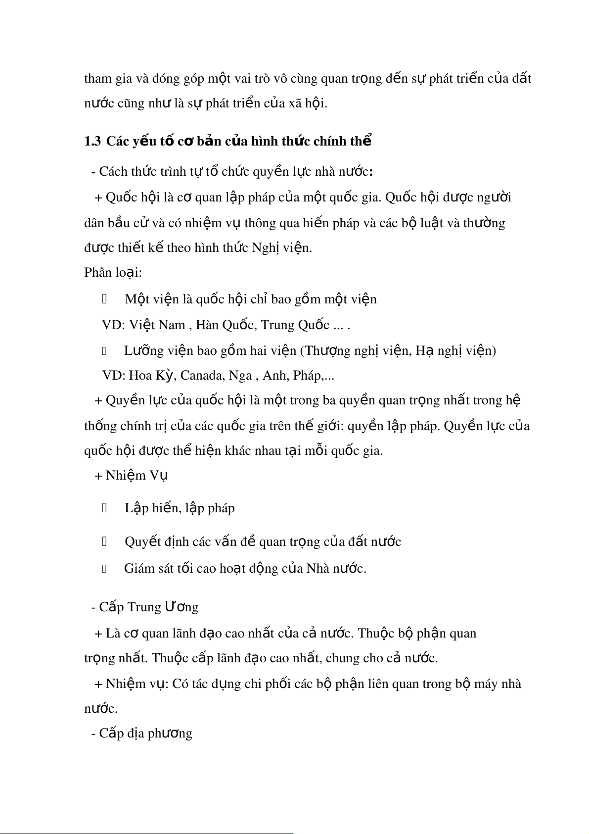 ệ à quốc hội chỉ bao gồm một viện VD: Vi t