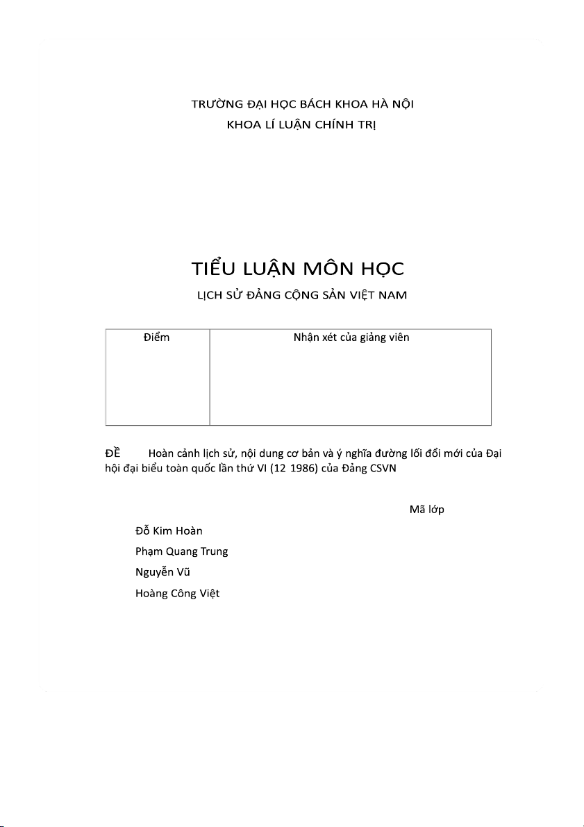 đổi mới của Đại hội đại biểu toàn quốc lần thứ VI (12 1986) của Đảng CSVN- ”. Bài trình