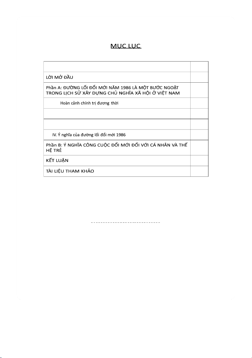 Ý NGHĨA CỦA ĐƯỜNG LỐI ĐỔI MỚI NĂM 1986: lOMoAR cPSD| 61531195