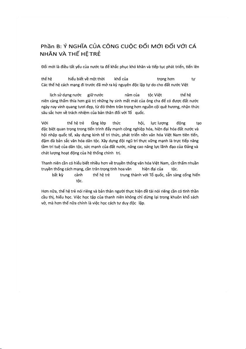 Phần B: Ý nghĩa công cuộc đổi mới đối với cá nhân và thế hệ trẻ.