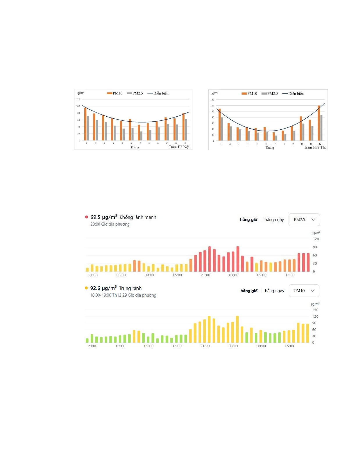 Hình 3. Nồng độ P M10 và P M2.5 tại quận Hai Bà Trưng đo được từ 21:00 ngày
