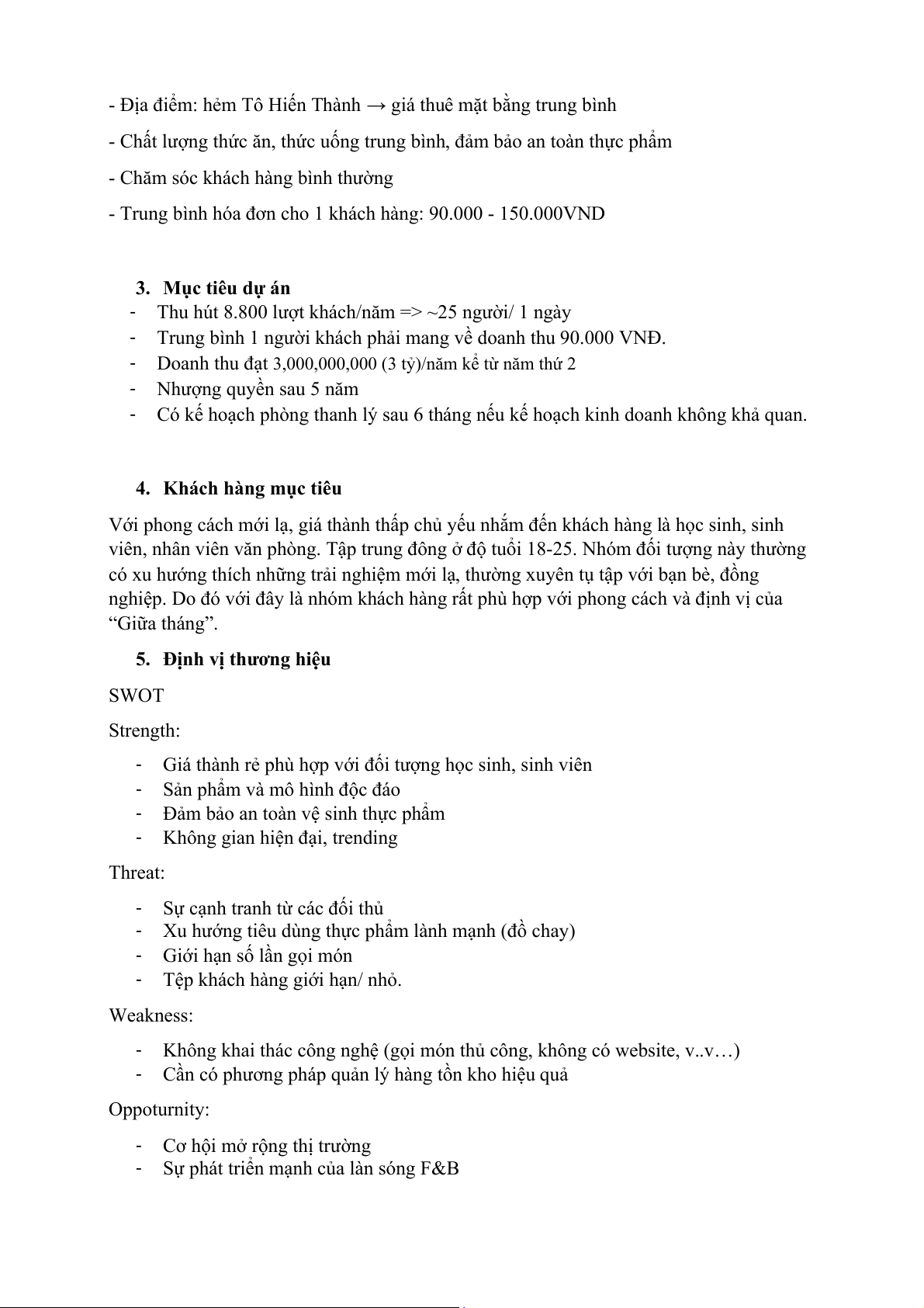- Trung bình hóa đơn cho 1 khách hàng: 90.000 - 150.000VND 3. Mục tiêu dự án -