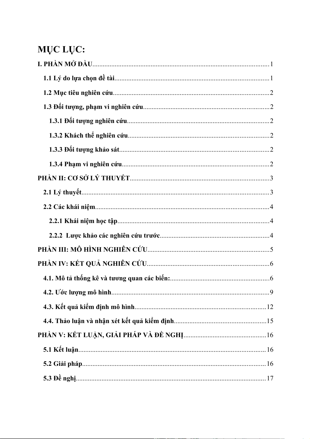 5.3 Đề nghị...............................................................................................................17 I. PHẦN MỞ ĐẦU