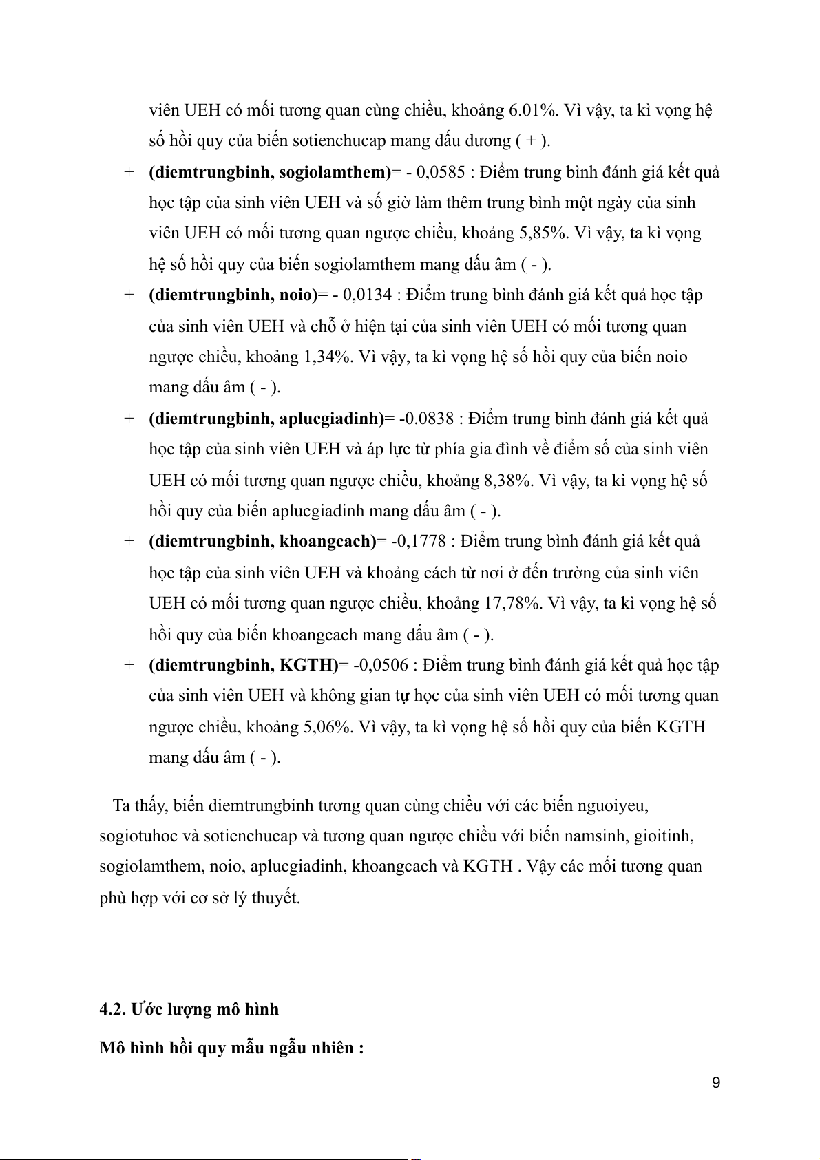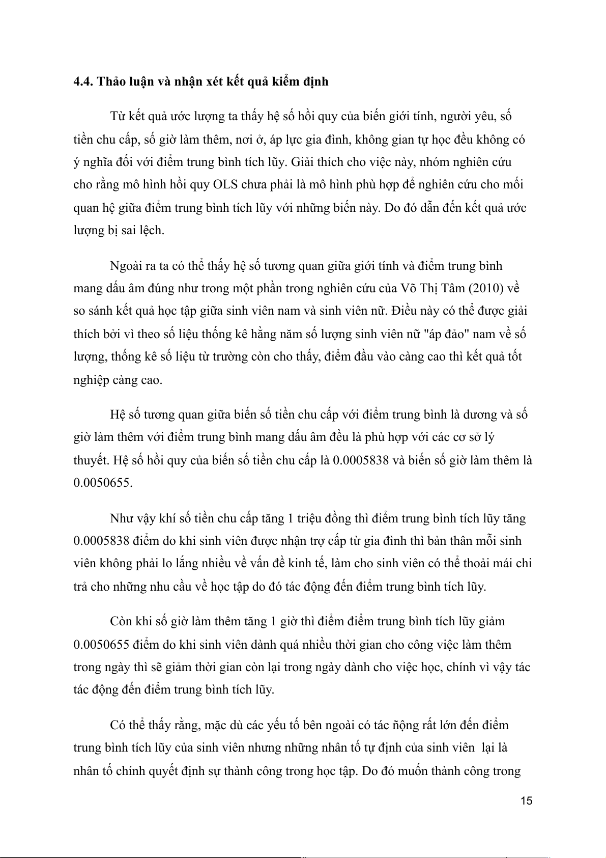 quan hệ giữa điểm trung bình tích lũy với những biến này. Do đó dẫn đến kết quả ước lượng bị sai lệch.
