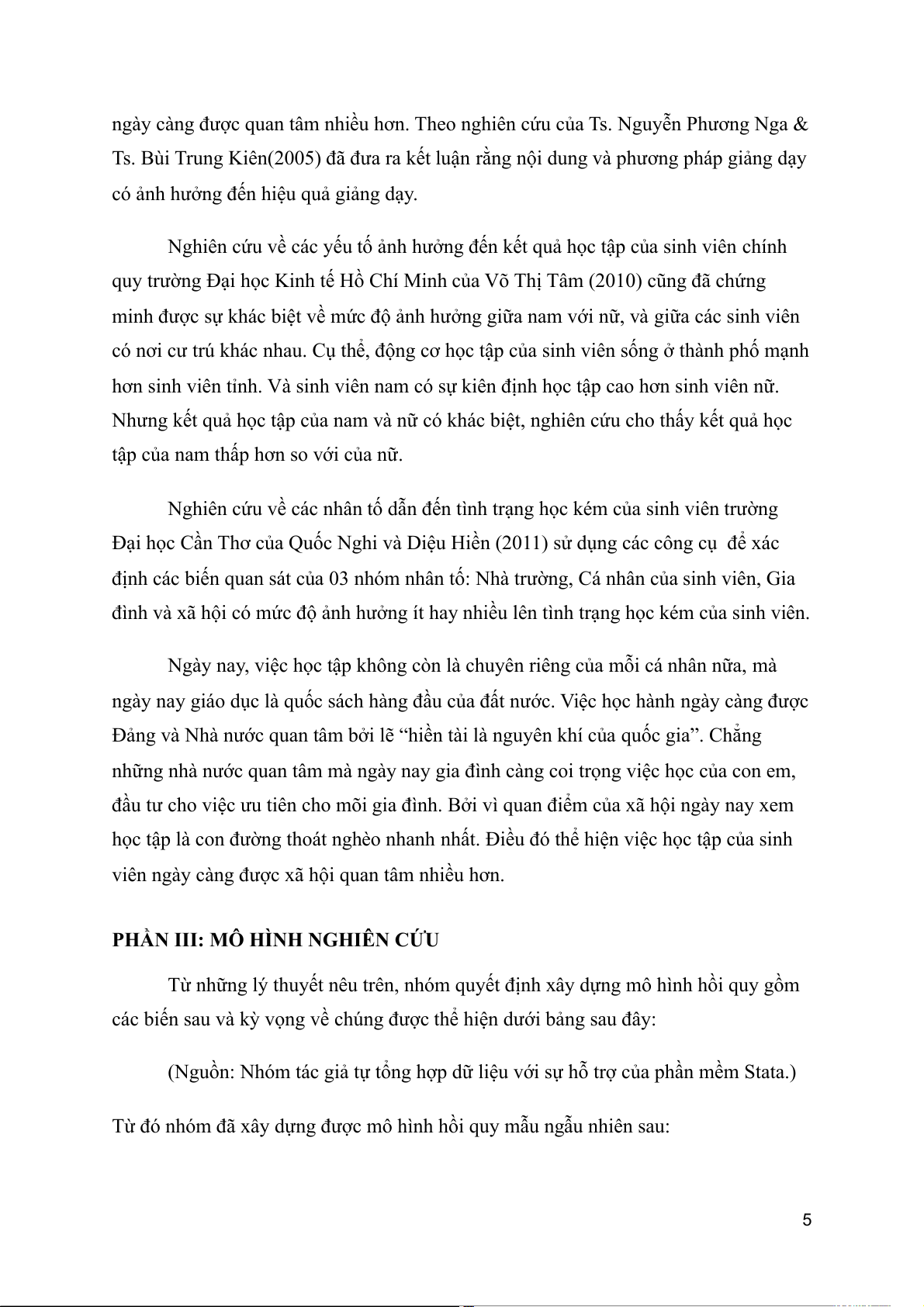 3. Võ Thị Tâm (2010) Các yếu tố tác động đến kết quả học tập của sinh viên