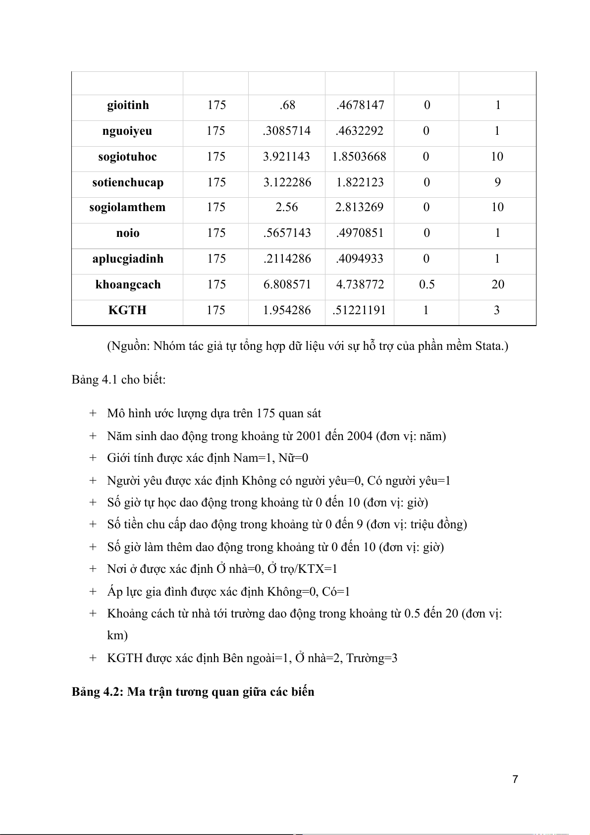 tiền chu cấp, số giờ làm thêm, nơi ở, áp lực gia đình, không gian tự học đều không có