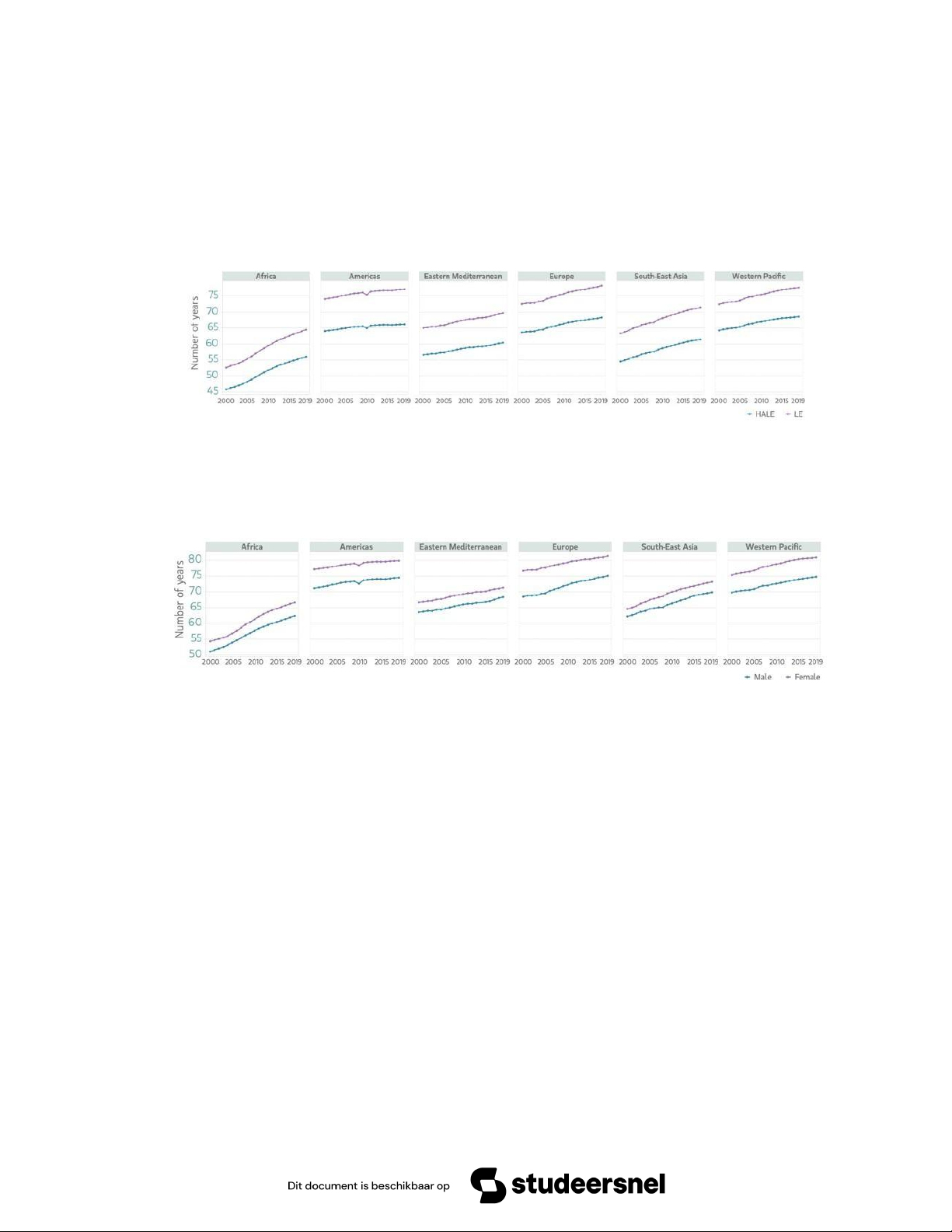 Hình 2-1: Tuổi thọ trung bình của con người giữa các khu vực trên thế giới từ 2000-