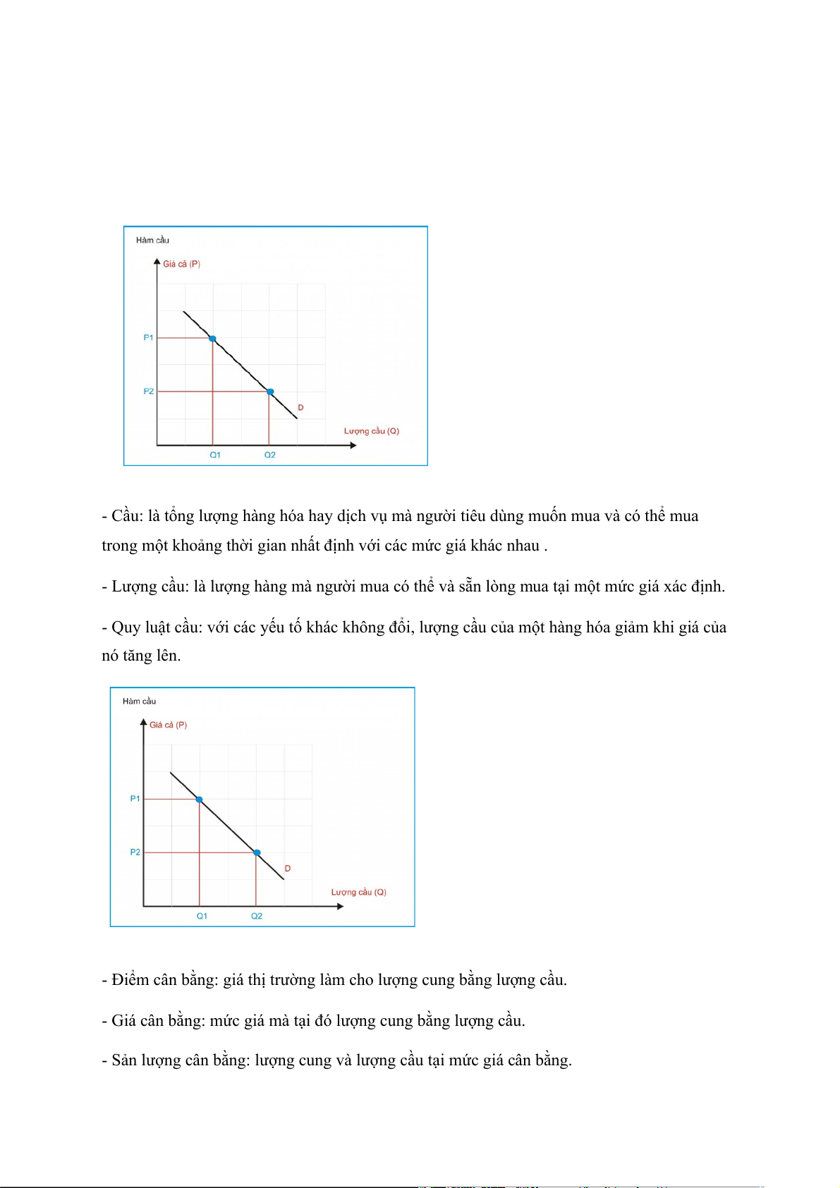 - Quy luật cầu: với các yếu tố khác không đổi, lượng cầu của một hàng hóa giảm khi giá của nó tăng lên.