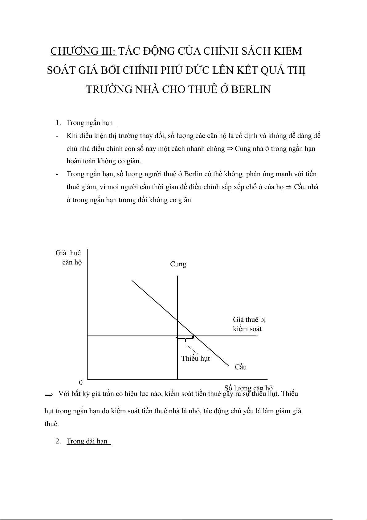 hụt trong ngắn hạn do kiểm soát tiền thuê nhà là nhỏ, tác động chủ yếu là làm giảm giá thuê. 2. Trong dài hạn -