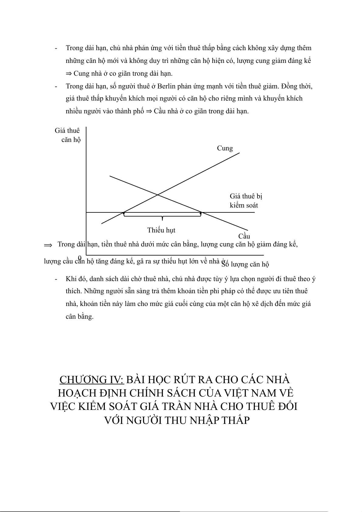 nhiều người vào thành phố ⇒ Cầu nhà ở co giãn trong dài hạn. Giá thuê căn hộ Cung Giá thuê bị kiểm soát . . Thiếu hụt Cầu
