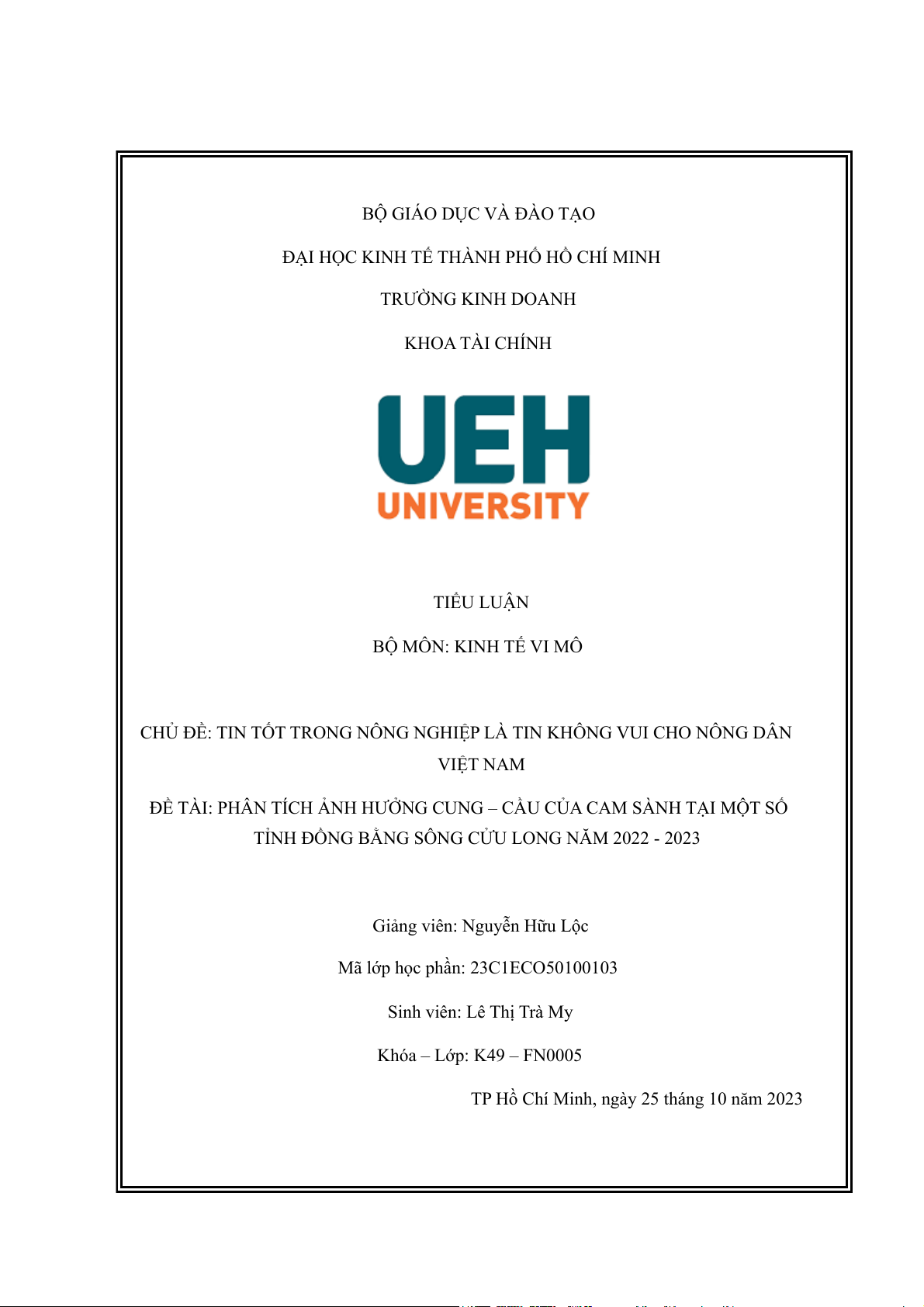Mã lớp học phần: 23C1ECO50100103 Sinh viên: Lê Thị Trà My