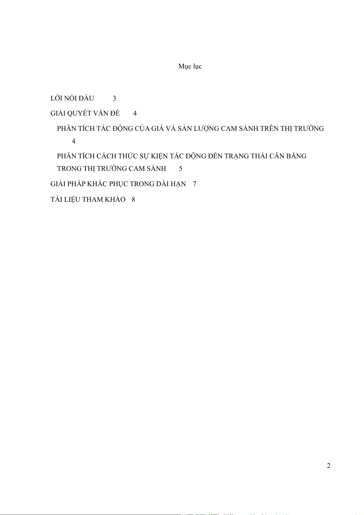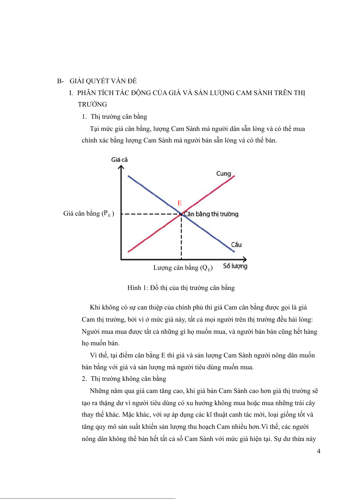 I. PHÂN TÍCH TÁC ĐỘNG CỦA GIÁ VÀ SẢN LƯỢNG CAM SÀNH TRÊN THỊ TRƯỜNG 1. Thị trường cân bằng