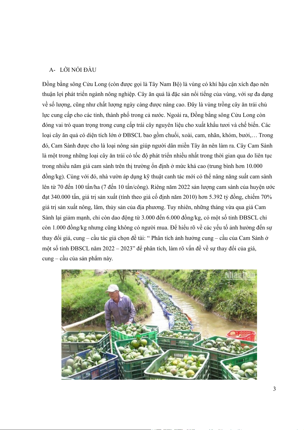 ĐỀ TÀI: PHÂN TÍCH ẢNH HƯỞNG CUNG – CẦU CỦA CAM SÀNH TẠI MỘT SỐ