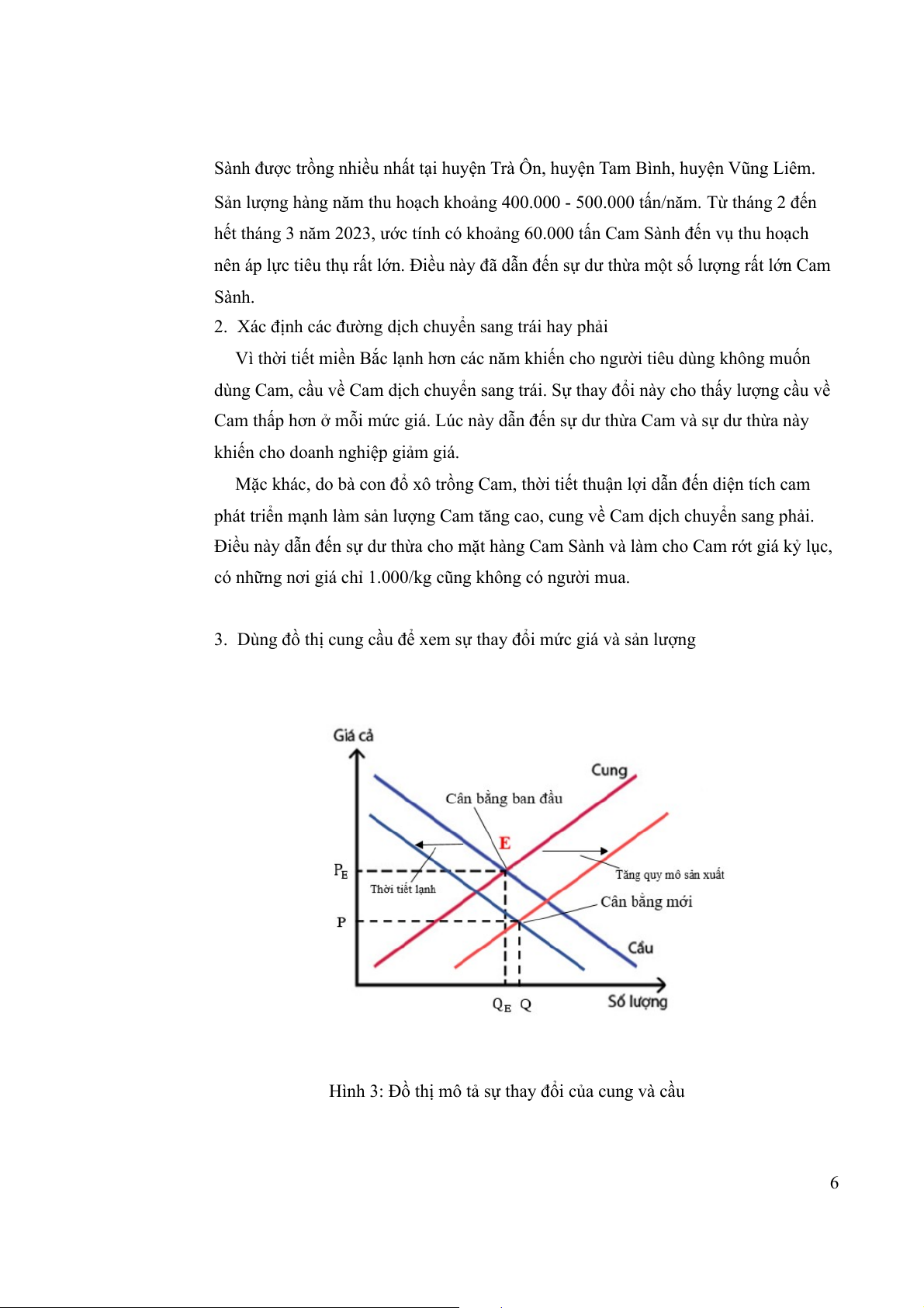 phát triển mạnh làm sản lượng Cam tăng cao, cung về Cam dịch chuyển sang phải.