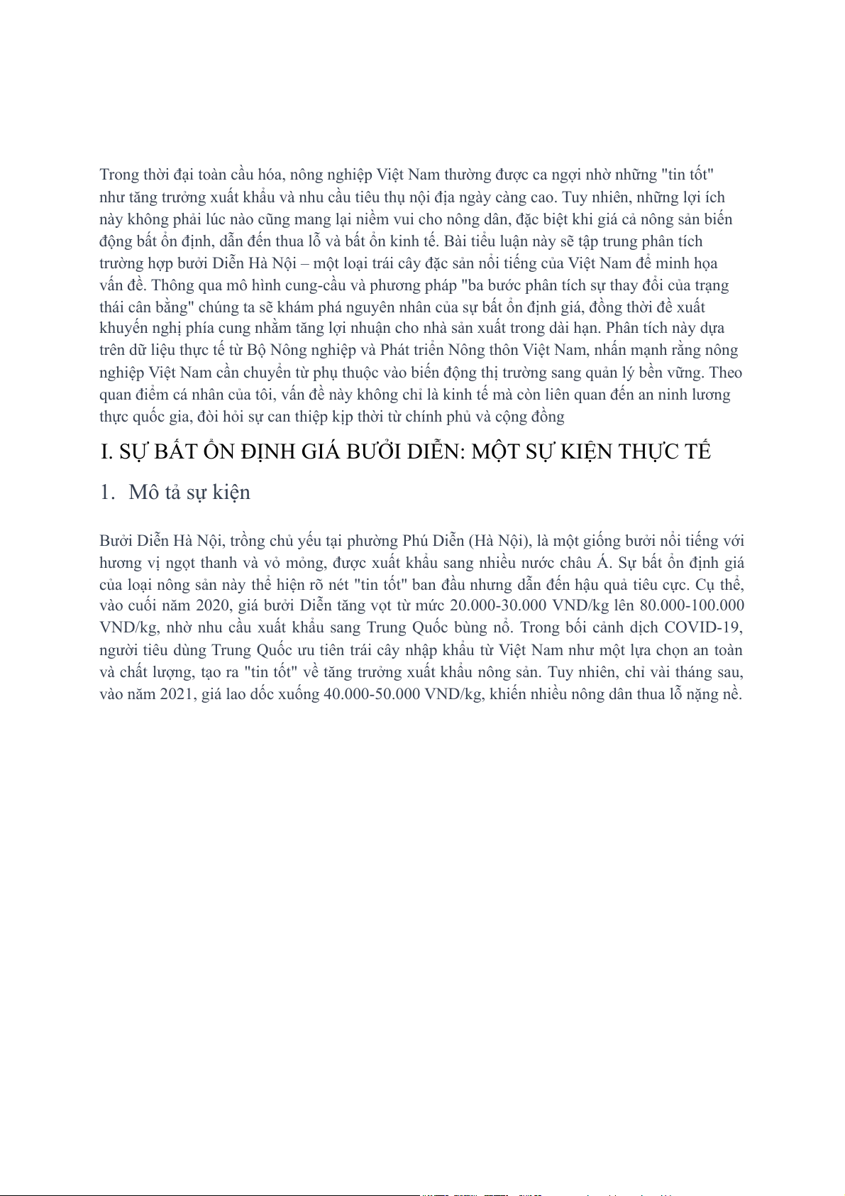 I. SỰ BẤT ỔN ĐỊNH GIÁ BƯỞI DIỄN: MỘT SỰ KIỆN THỰC TẾ 1. Mô tả sự kiện